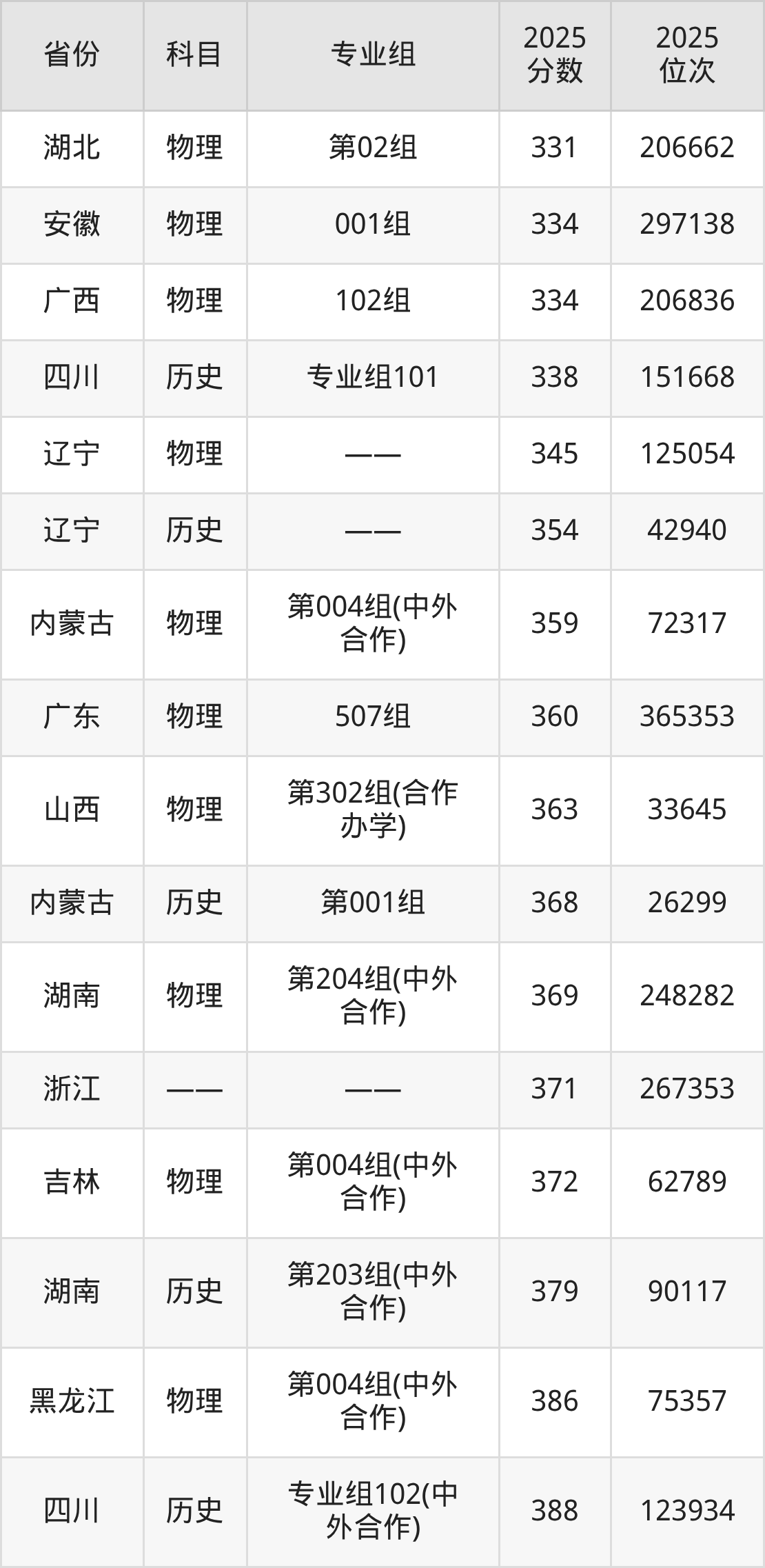 物理类:2025年石家庄医学高等专科学校录取最低分是150分(四川),对应的位次排名是284789名。