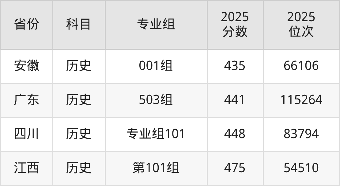 历史类:2025年安庆医药高等专科学校省内录取最低分是435分,对应的位次排名是66106名。建议:如果2026年排名超过66106名,那么被该校录取的概率较大。