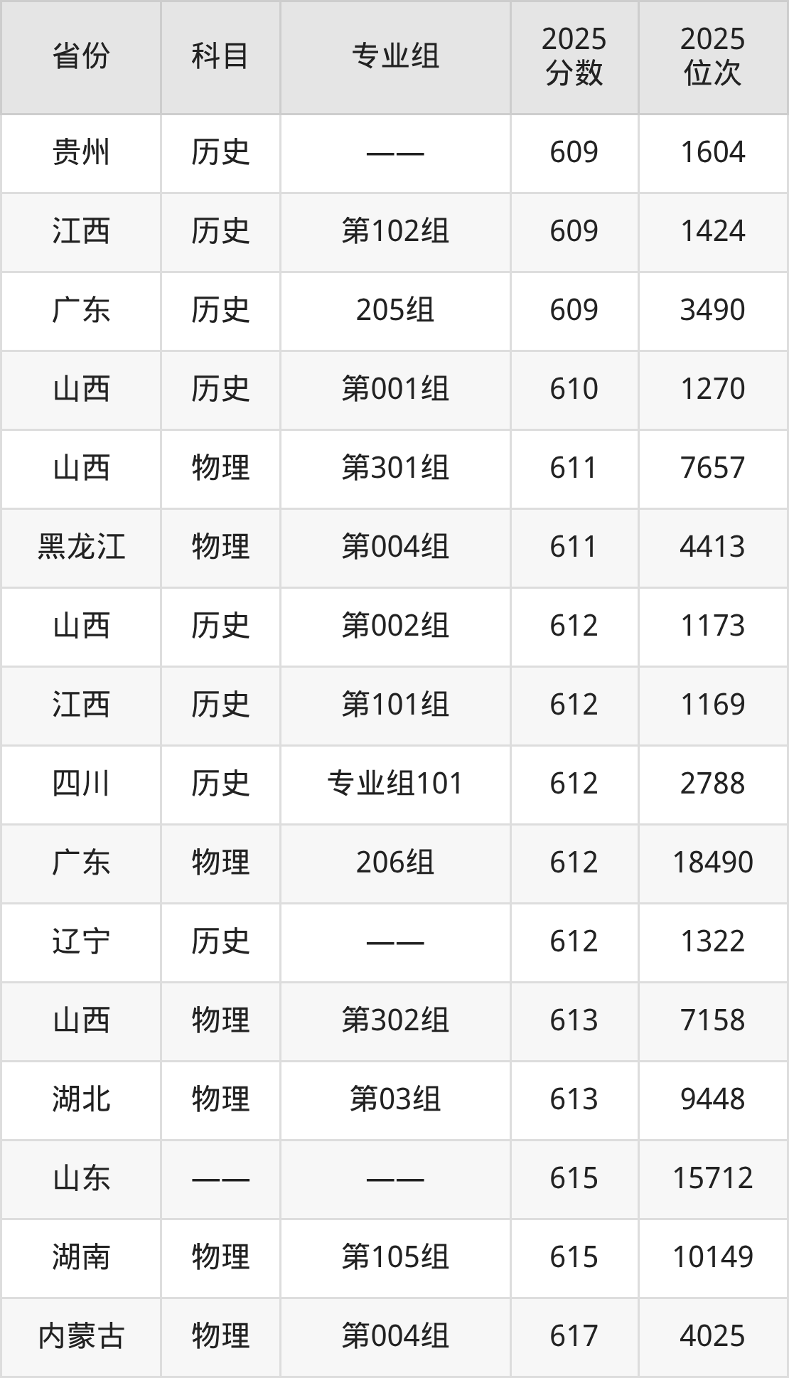 2025年山东大学(威海)省内录取最低分是615分,对应的位次排名是15712名。建议:如果2026年排名超过15712名,那么被该校录取的概率较大。