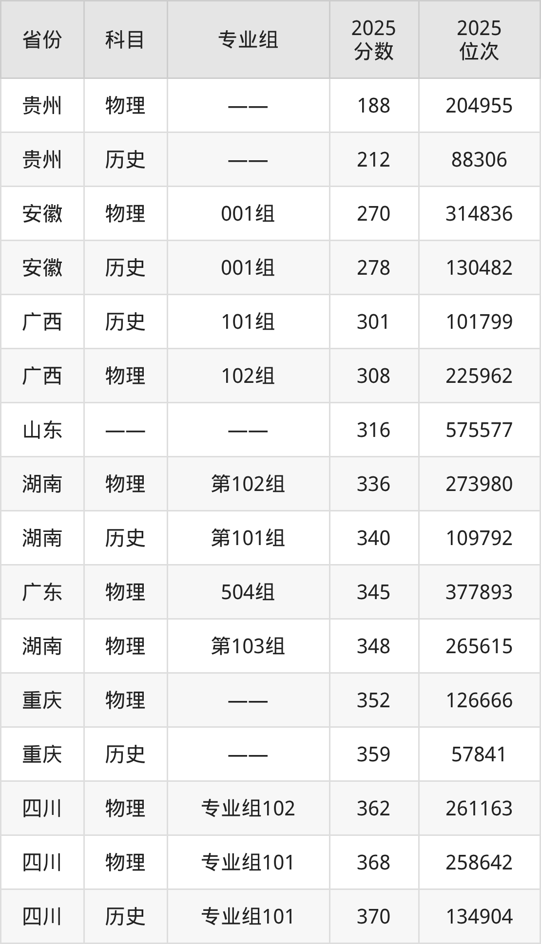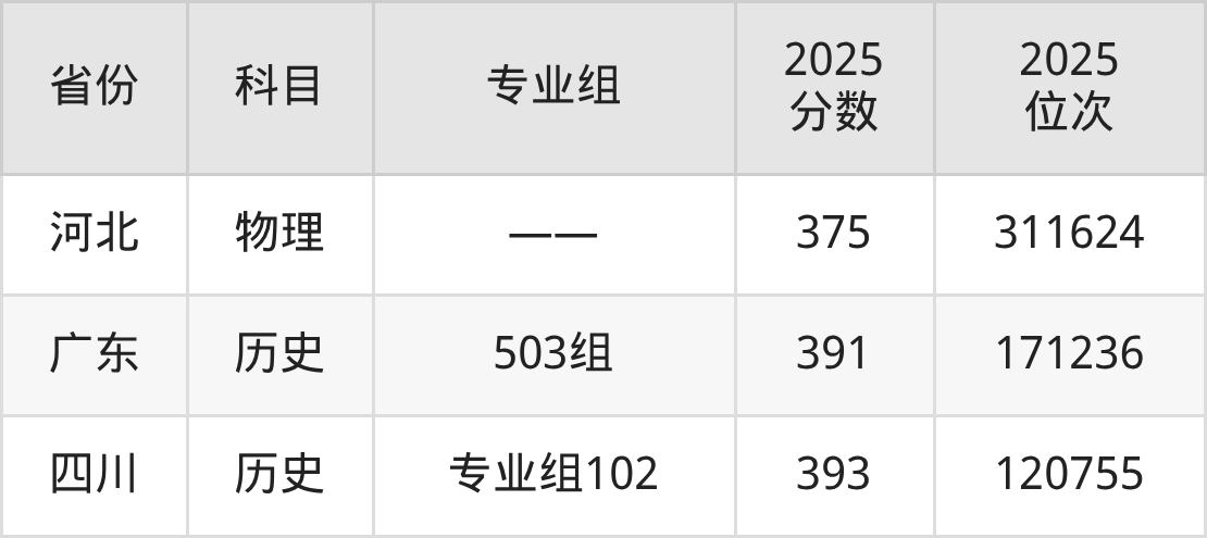 物理类:2025年贵州经贸职业技术学院录取最低分是270分(安徽),对应的位次排名是314836名。