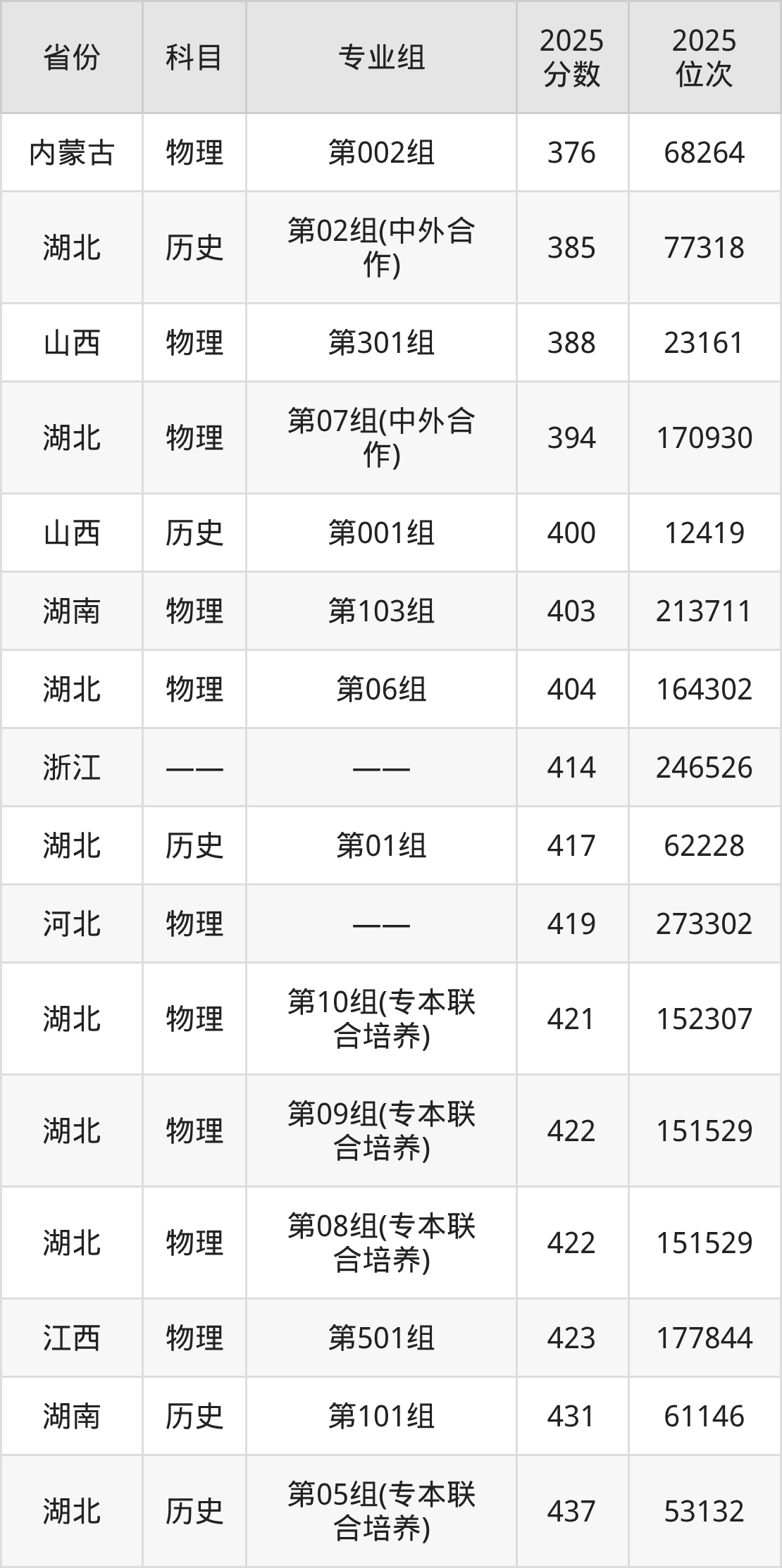 历史类:2025年湖北财税职业学院录取最低分是400分(山西),对应的位次排名是12419名。