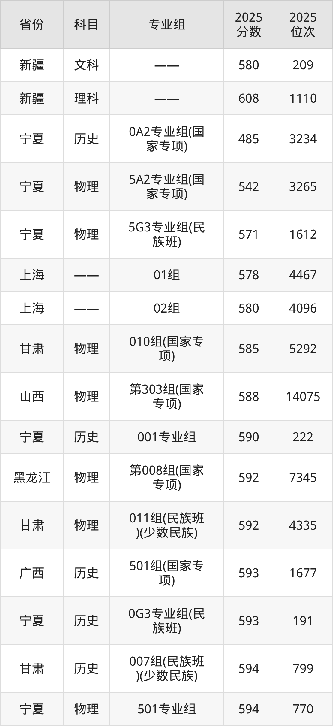 文科:2025年中山大学录取最低分是580分(新疆),对应的位次排名是209名。