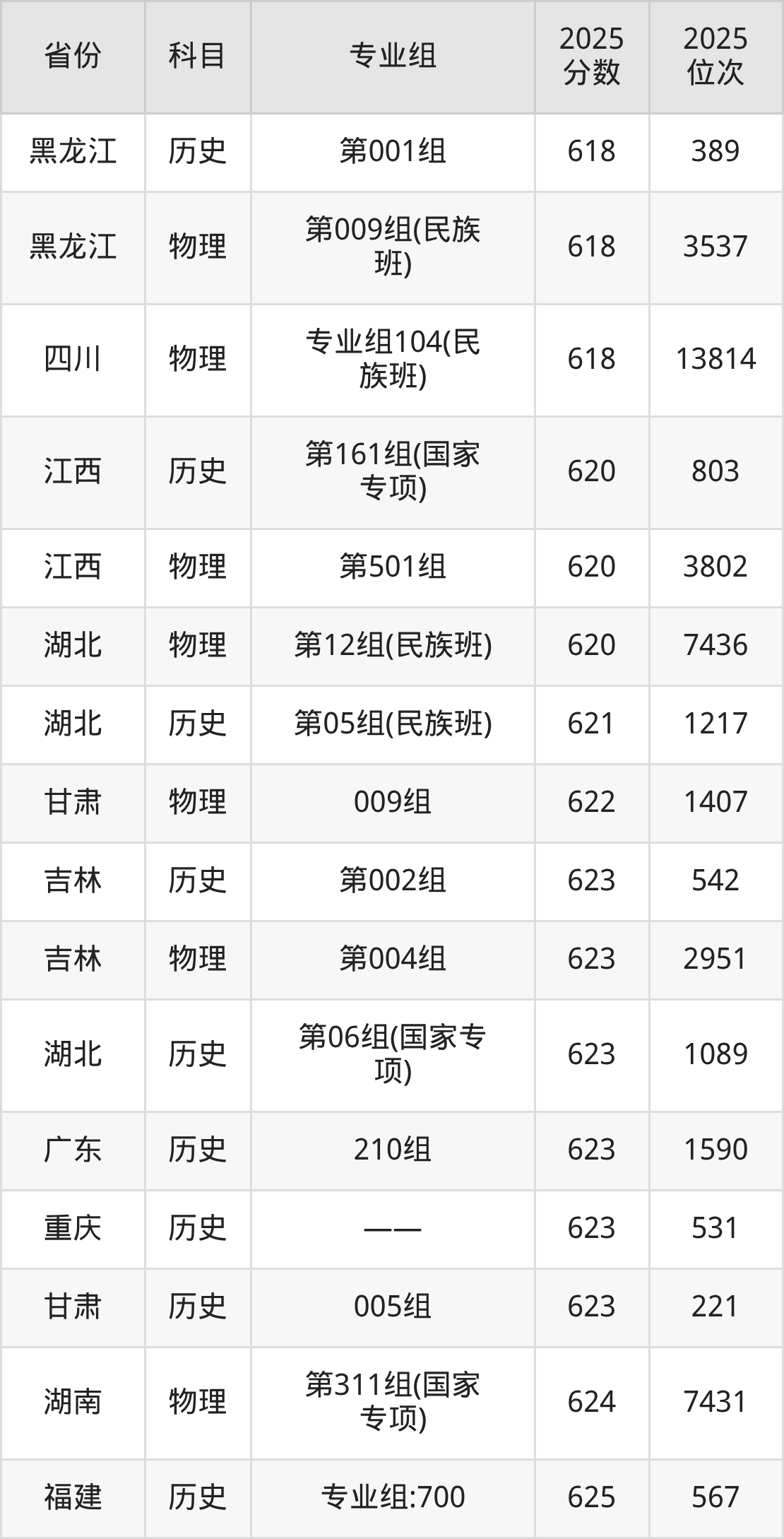 历史类:2025年中山大学省内录取最低分是623分,对应的位次排名是1590名。建议:如果2026年排名超过1590名,那么被该校录取的概率较大。