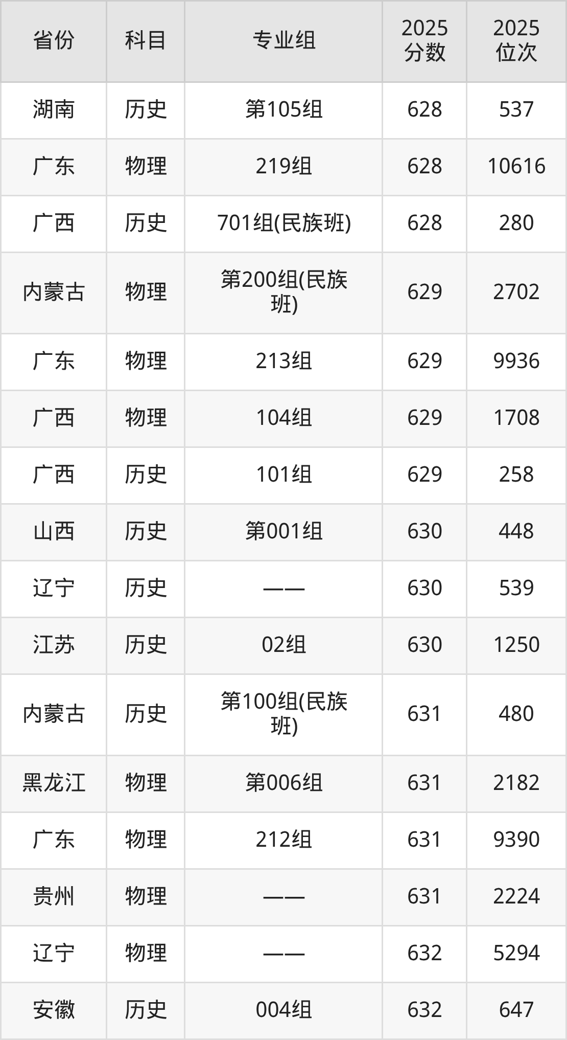 物理类:2025年中山大学省内录取最低分是628分,对应的位次排名是10616名。建议:如果2026年排名超过10616名,那么被该校录取的概率较大。