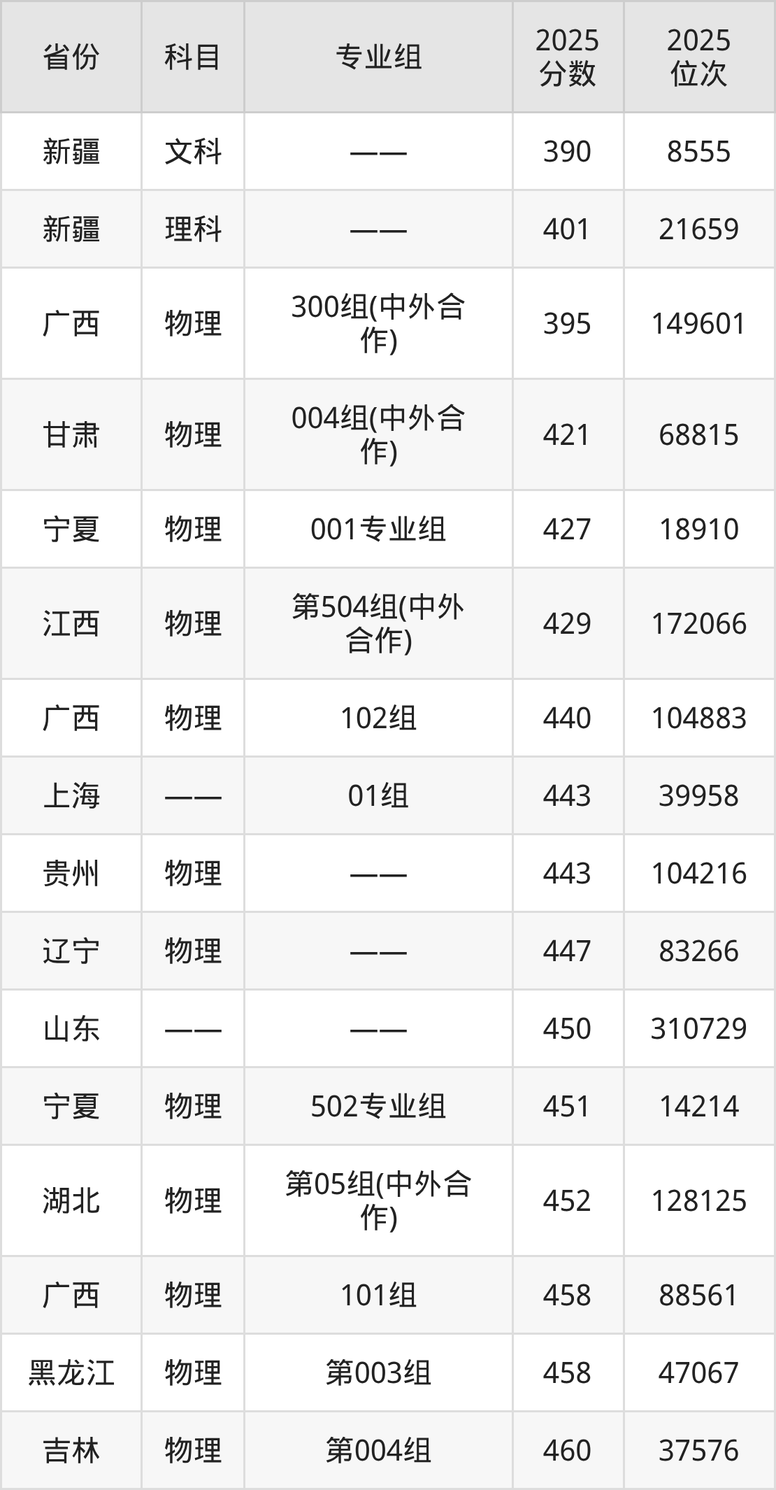 物理类:2025年山东交通学院录取最低分是395分(广西),对应的位次排名是149601名。