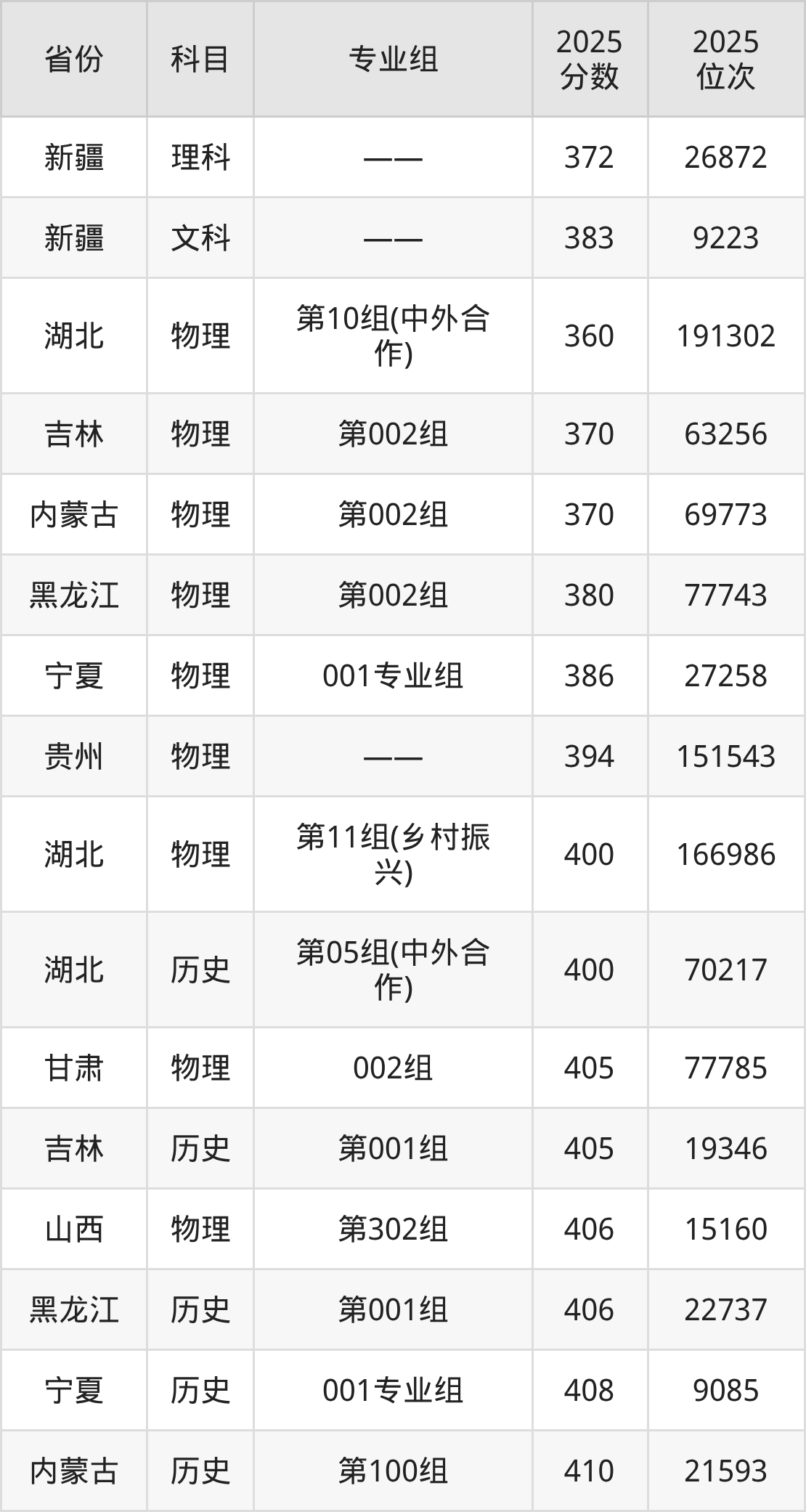 物理类:2025年武汉职业技术大学录取最低分是370分(吉林),对应的位次排名是63256名。