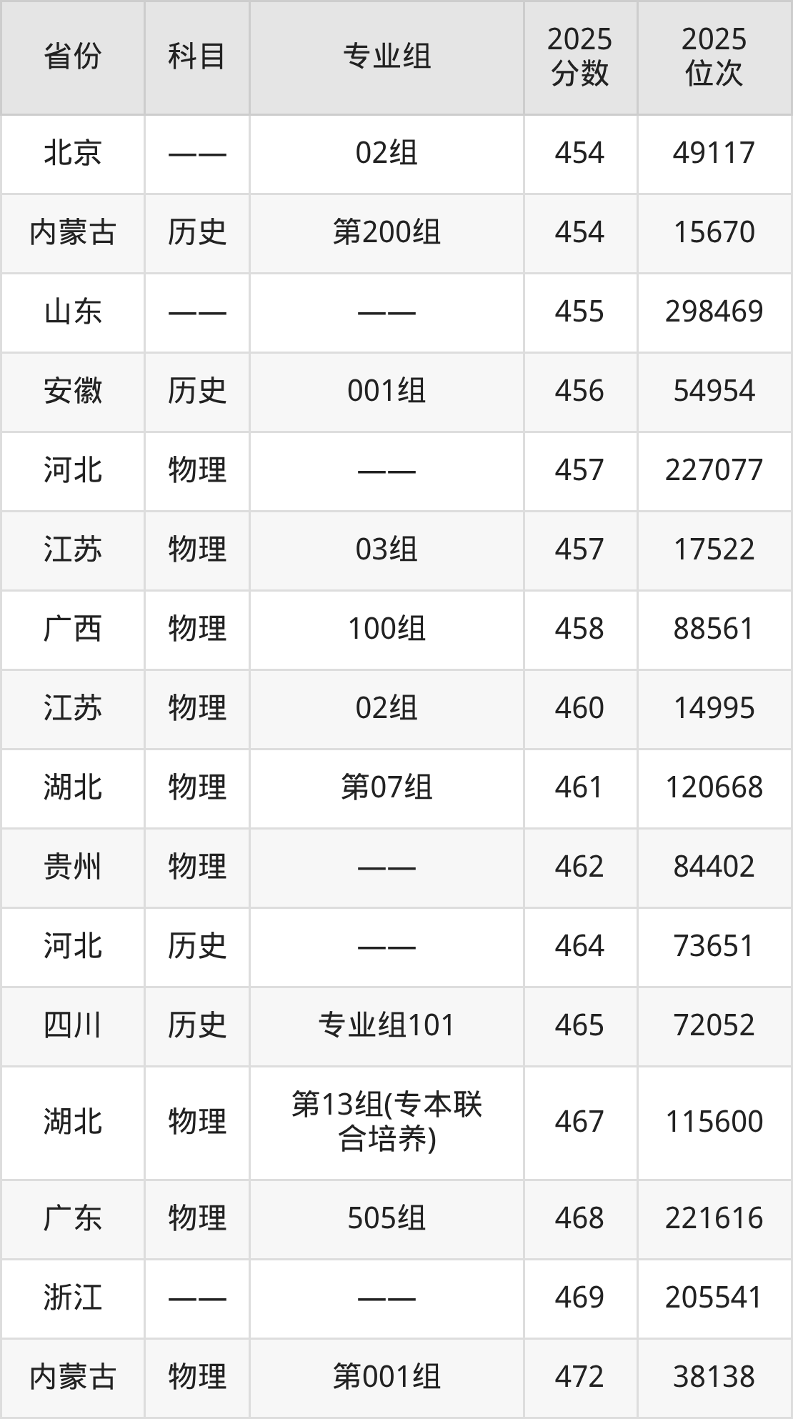 3+3地区:2025年武汉职业技术大学录取最低分是454分(北京),对应的位次排名是49117名。