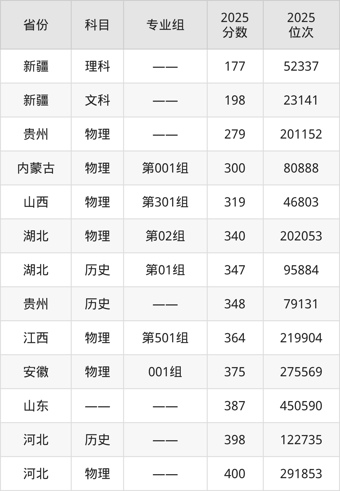 物理类:2025年湖北黄冈应急管理职业技术学院录取最低分是279分(贵州),对应的位次排名是201152名。