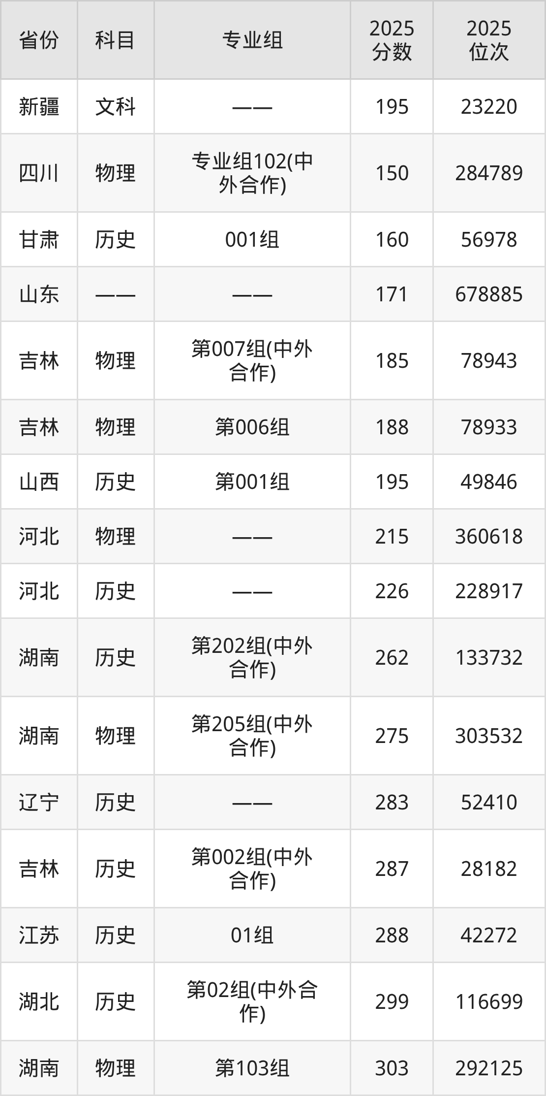 历史类:2025年长春师范高等专科学校录取最低分是160分(甘肃),对应的位次排名是56978名。