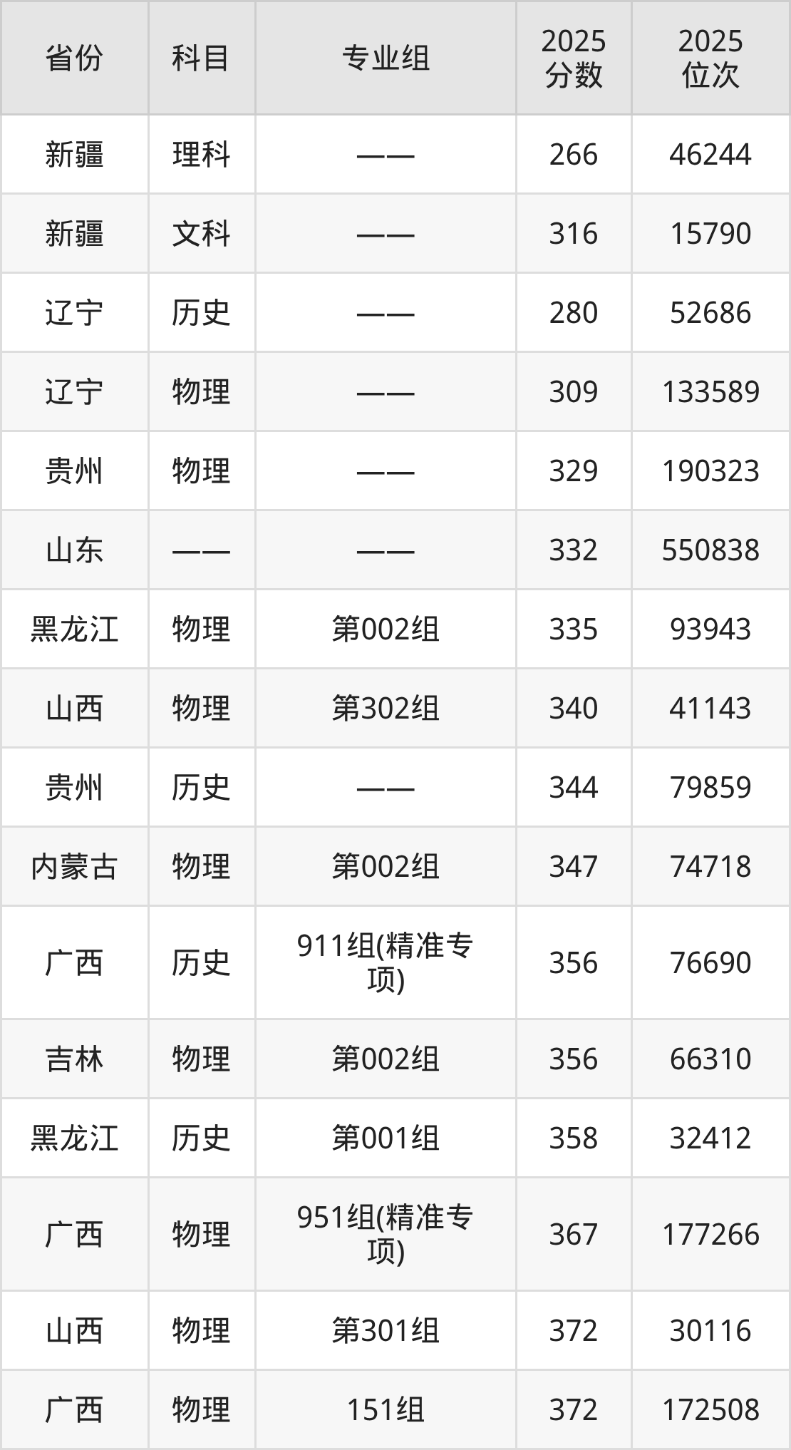 理科:2025年广西电力职业技术学院录取最低分是266分(新疆),对应的位次排名是46244名。