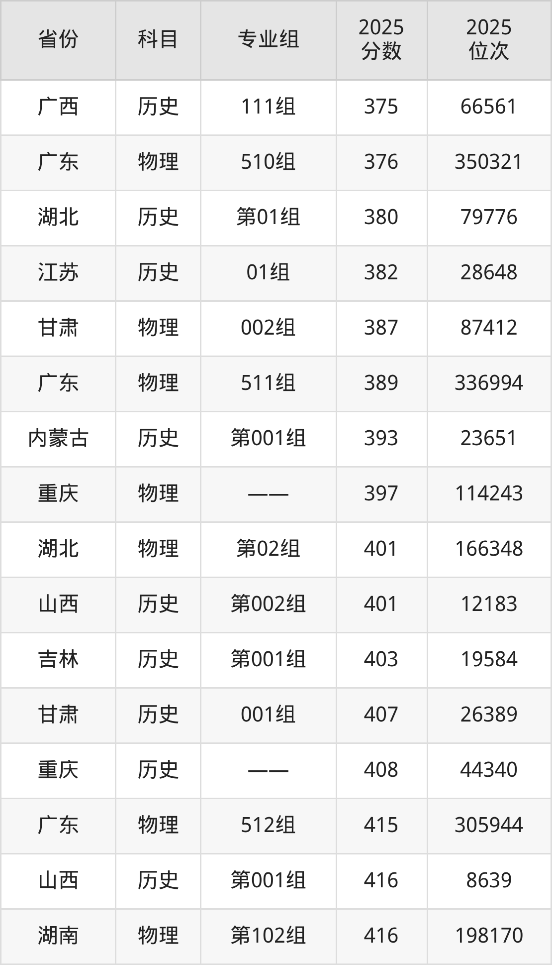 物理类:2025年广西电力职业技术学院录取最低分是309分(辽宁),对应的位次排名是133589名。
