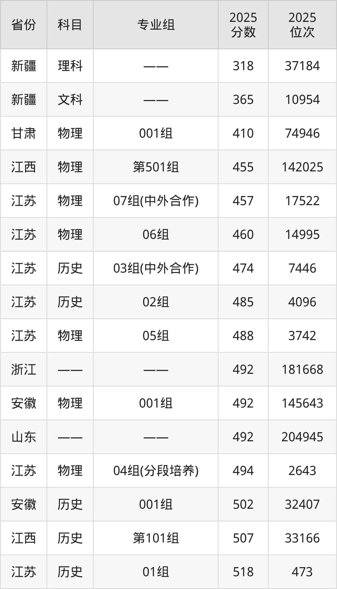 理科:2025年南京铁道职业技术学院录取最低分是318分(新疆),对应的位次排名是37184名。