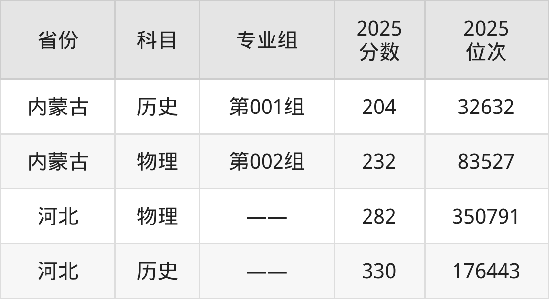 历史类:2025年内蒙古美术职业学院录取最低分是330分(河北),对应的位次排名是176443名。