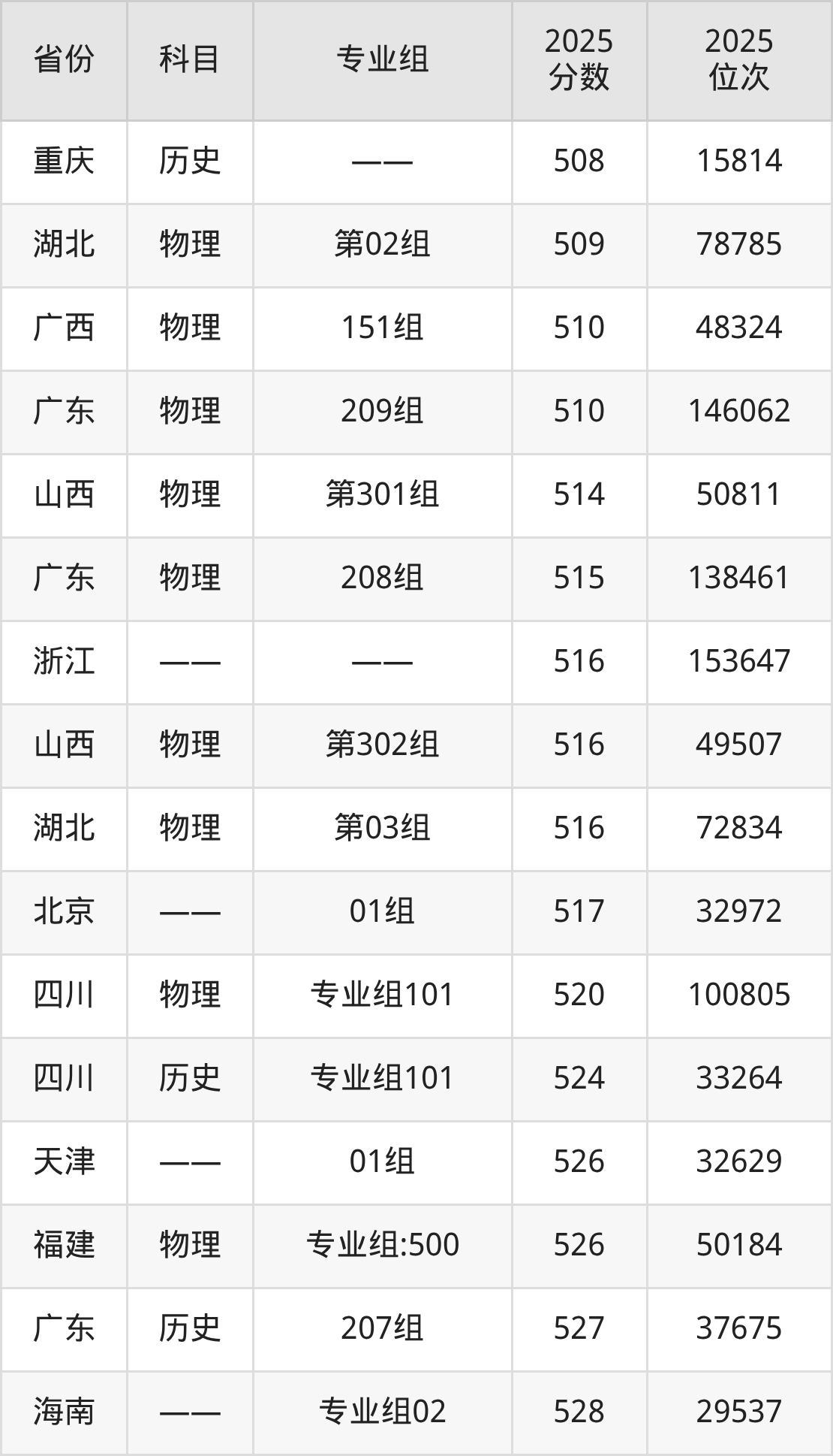 物理类:2025年齐鲁工业大学录取最低分是460分(江西),对应的位次排名是136438名。