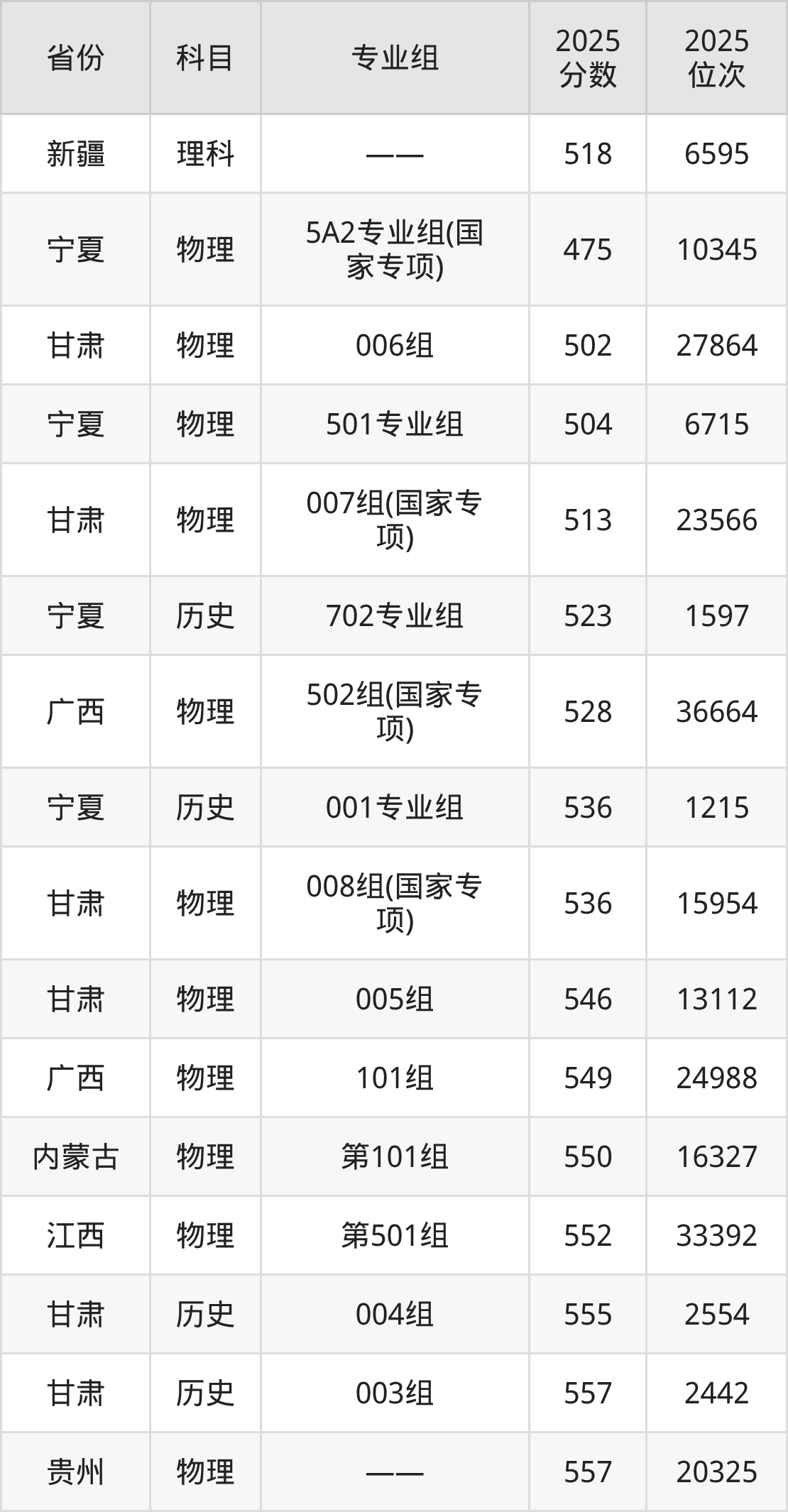 物理类:2025年合肥工业大学(宣城校区)录取最低分是475分(宁夏),对应的位次排名是10345名。