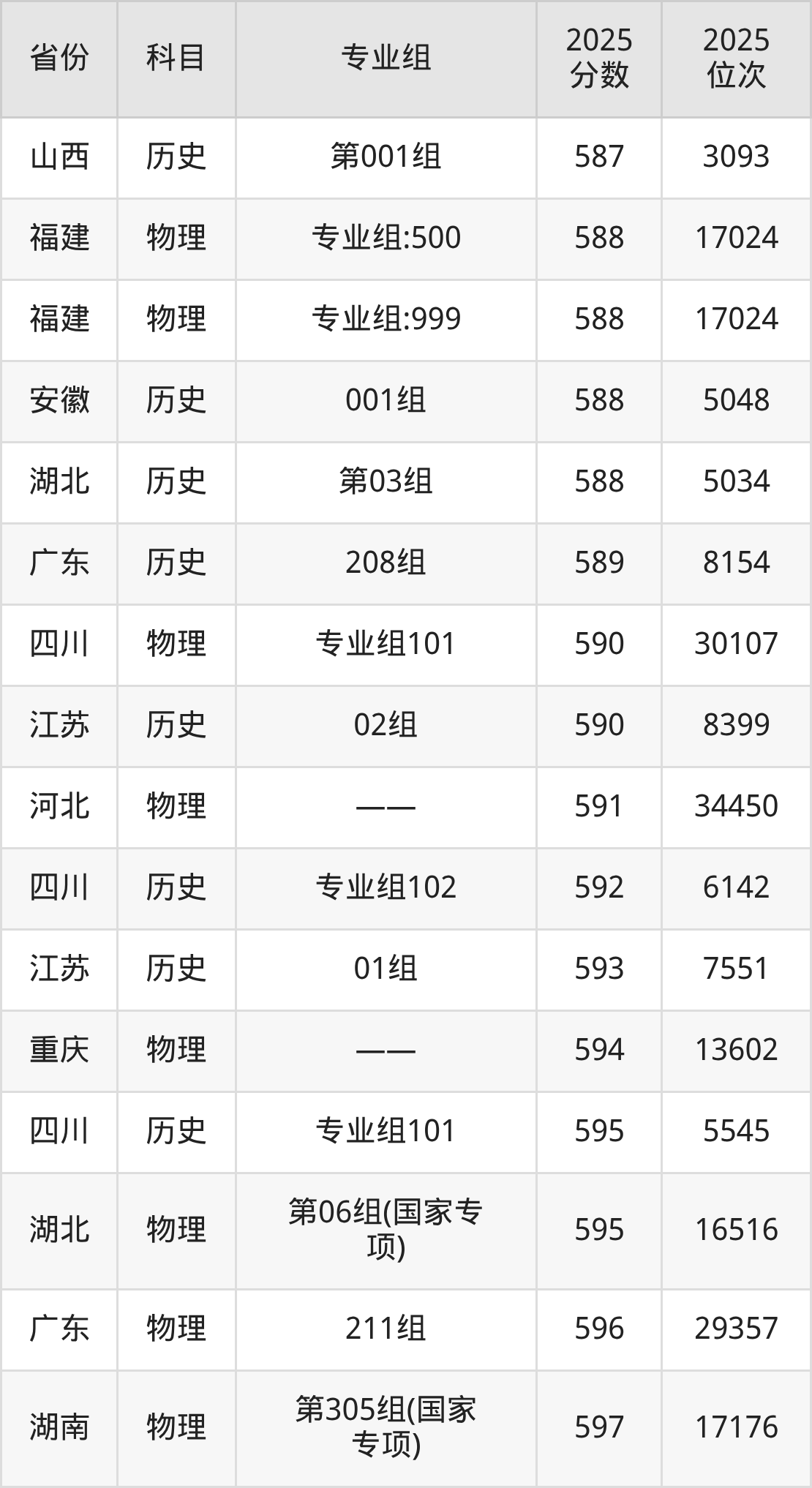 3+3地区:2025年合肥工业大学(宣城校区)录取最低分是581分(山东),对应的位次排名是41258名。