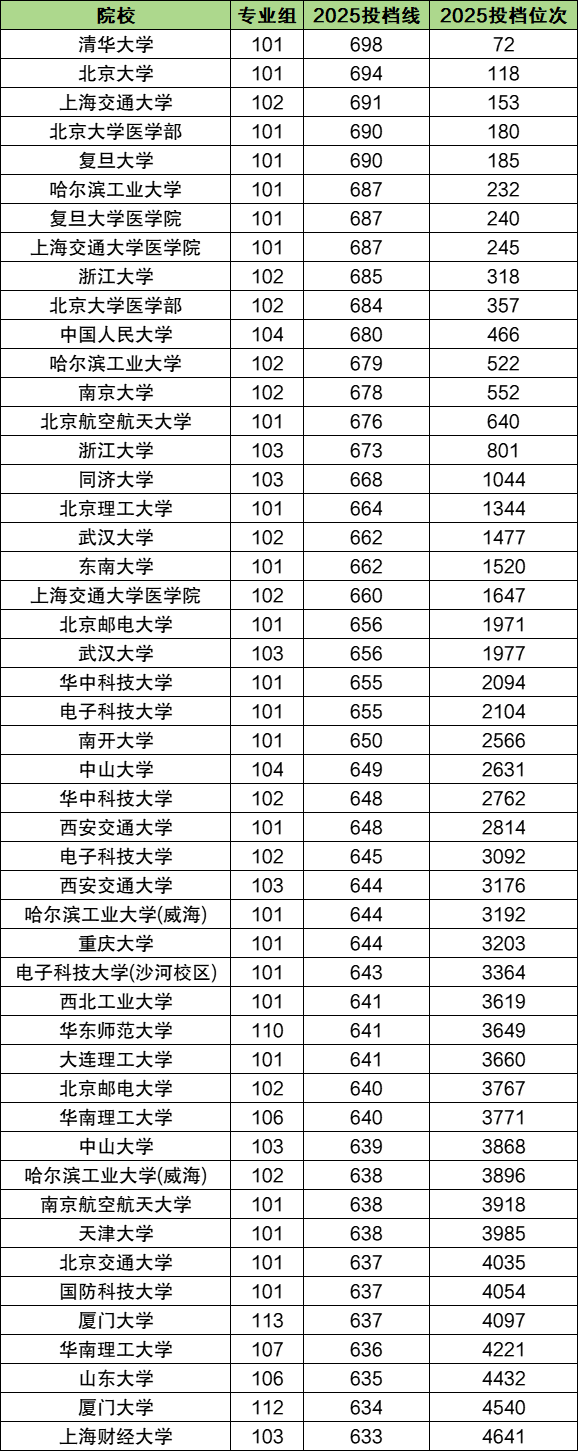 陕西物理组1-5000名对应大学名单:清华大学、北京大学、上海交通大学