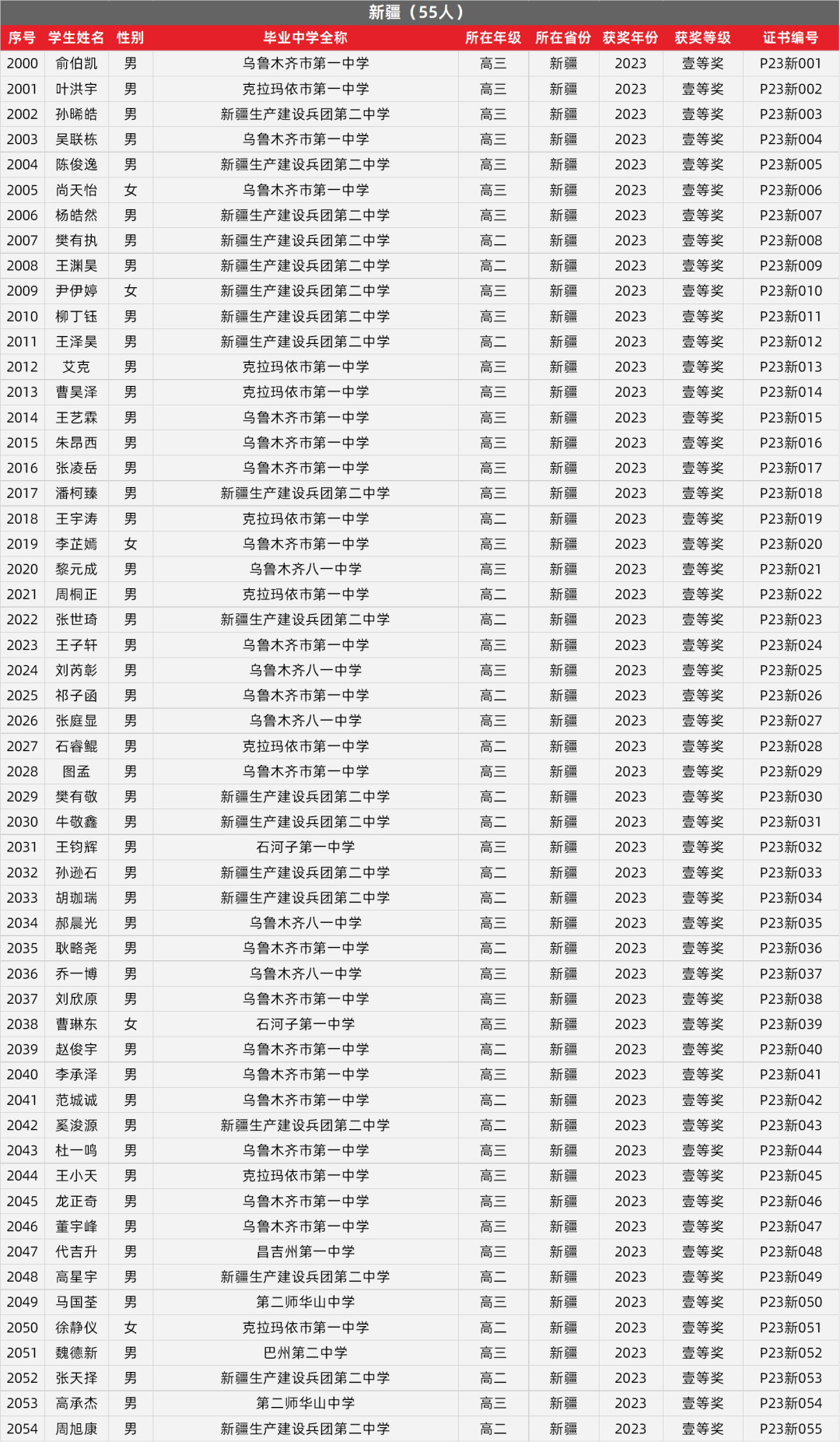 29. 新疆物理竞赛获奖名单