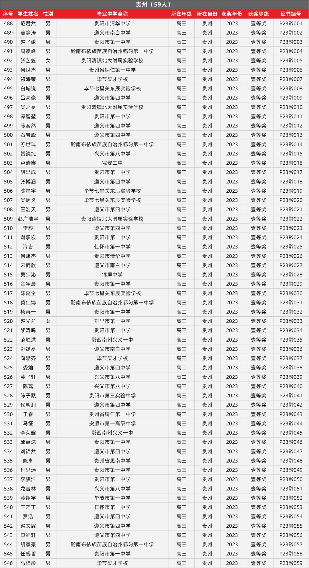 8. 贵州物理竞赛获奖名单