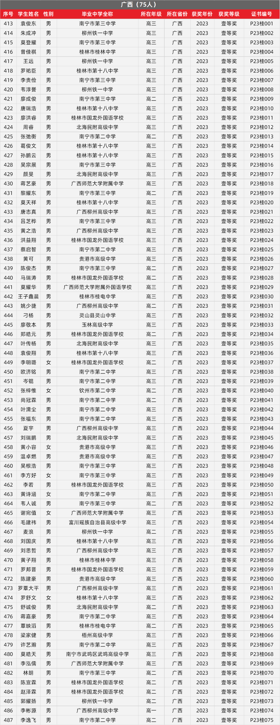 7. 广西物理竞赛获奖名单