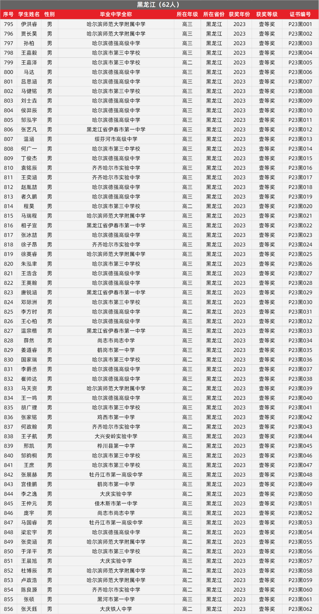 12. 黑龙江物理竞赛获奖名单
