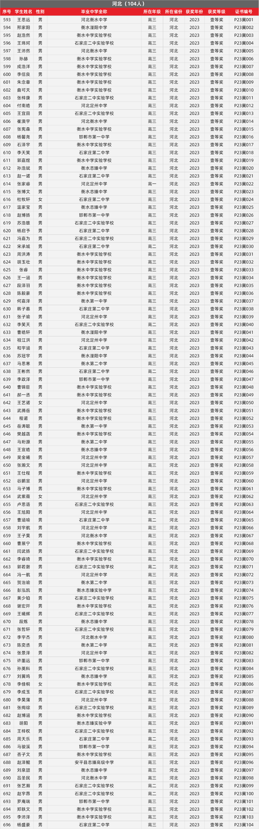 10. 河北物理竞赛获奖名单