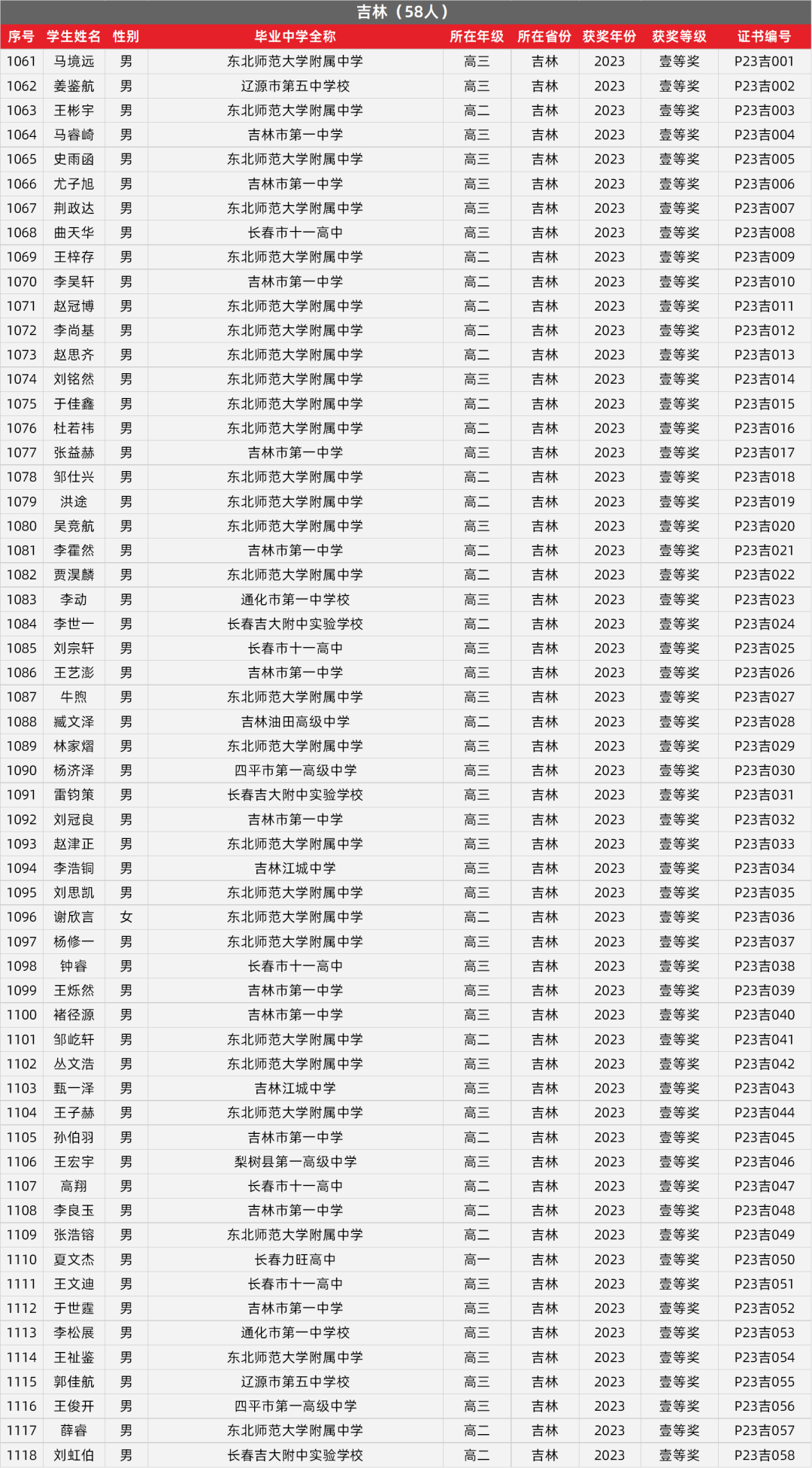 15. 吉林物理竞赛获奖名单