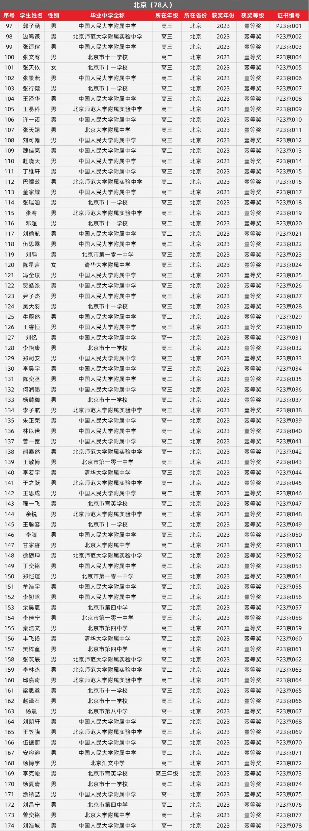 3. 北京物理竞赛获奖名单