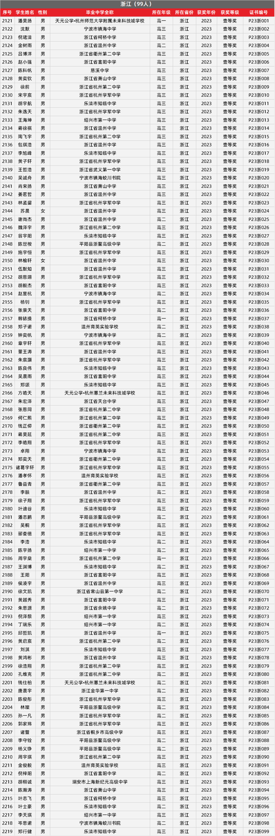 31. 浙江物理竞赛获奖名单
