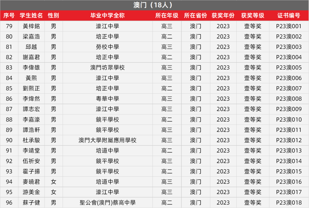 2. 澳门物理竞赛获奖名单