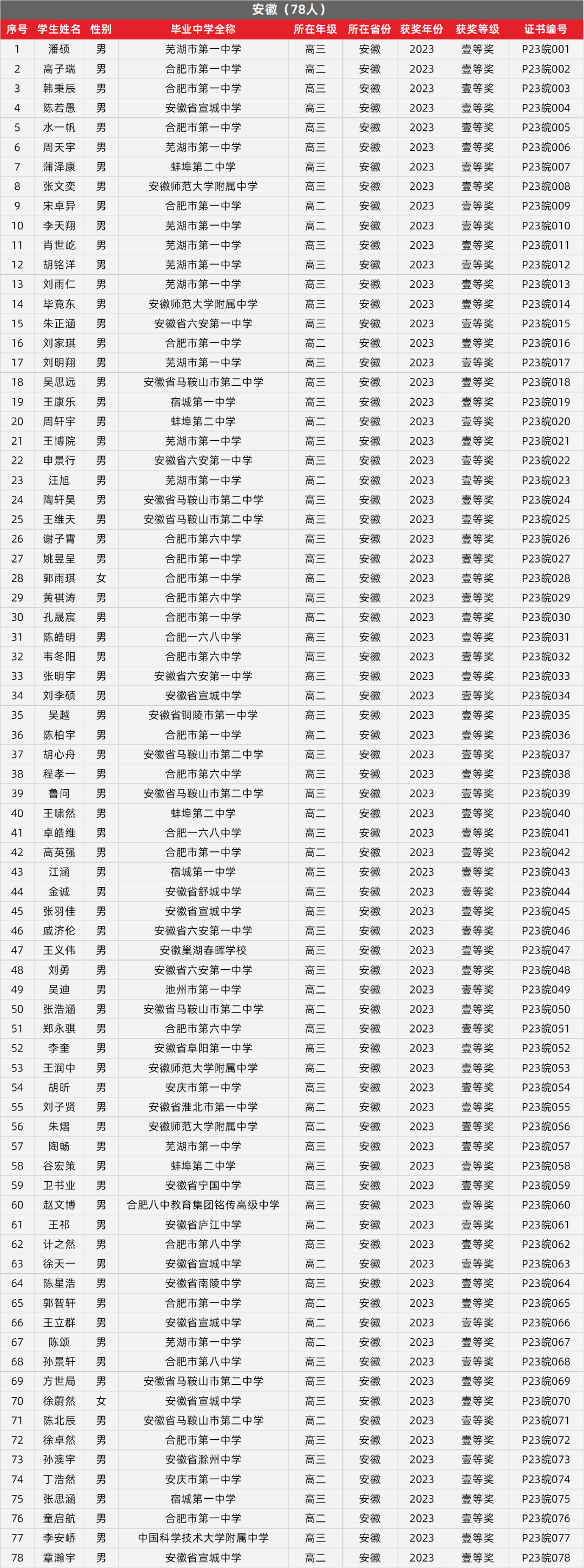 1. 安徽物理竞赛获奖名单