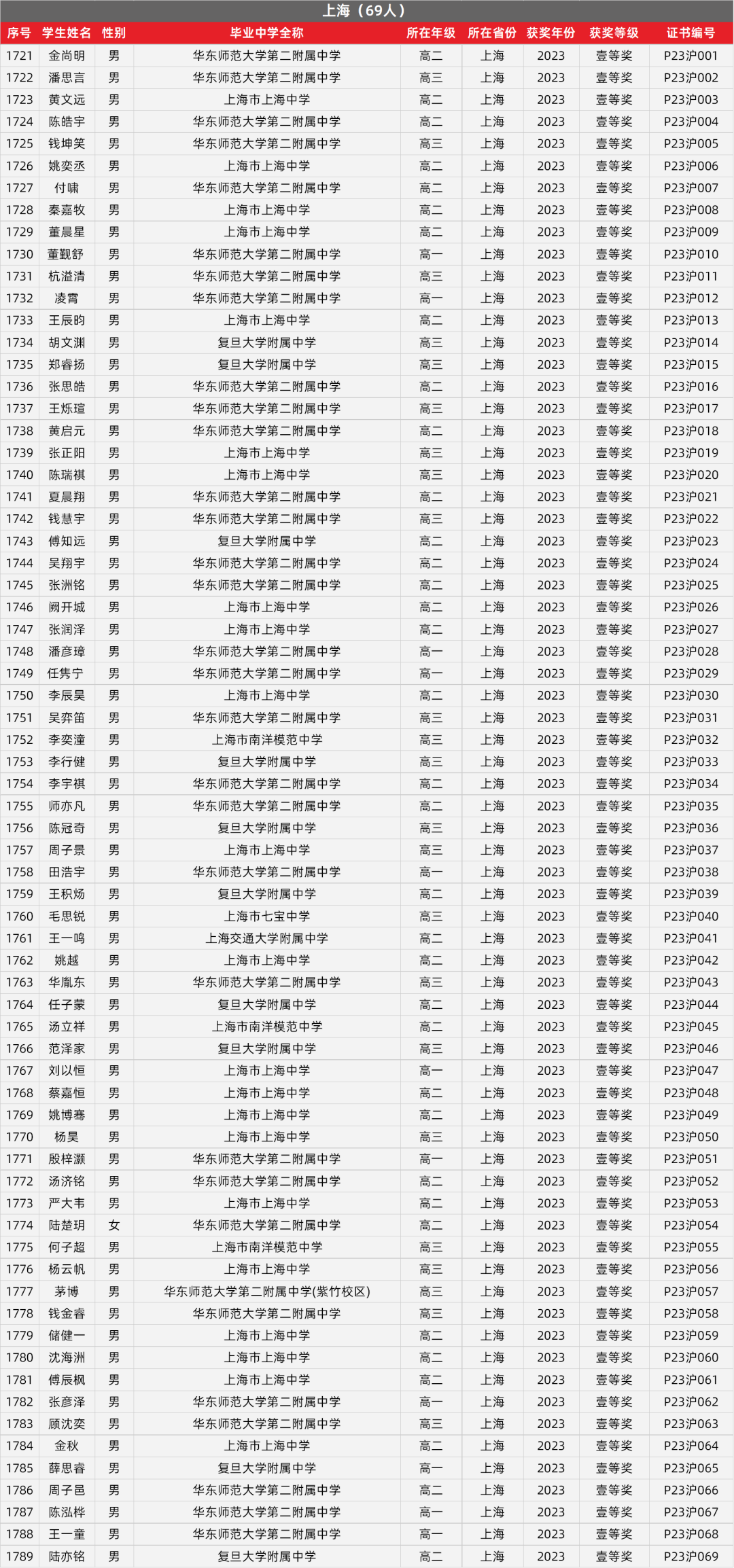 24. 上海物理竞赛获奖名单