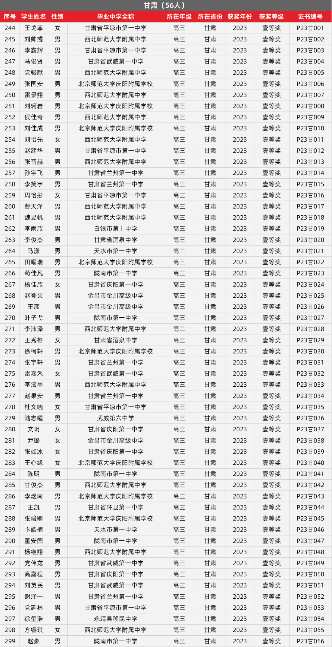 5. 甘肃物理竞赛获奖名单