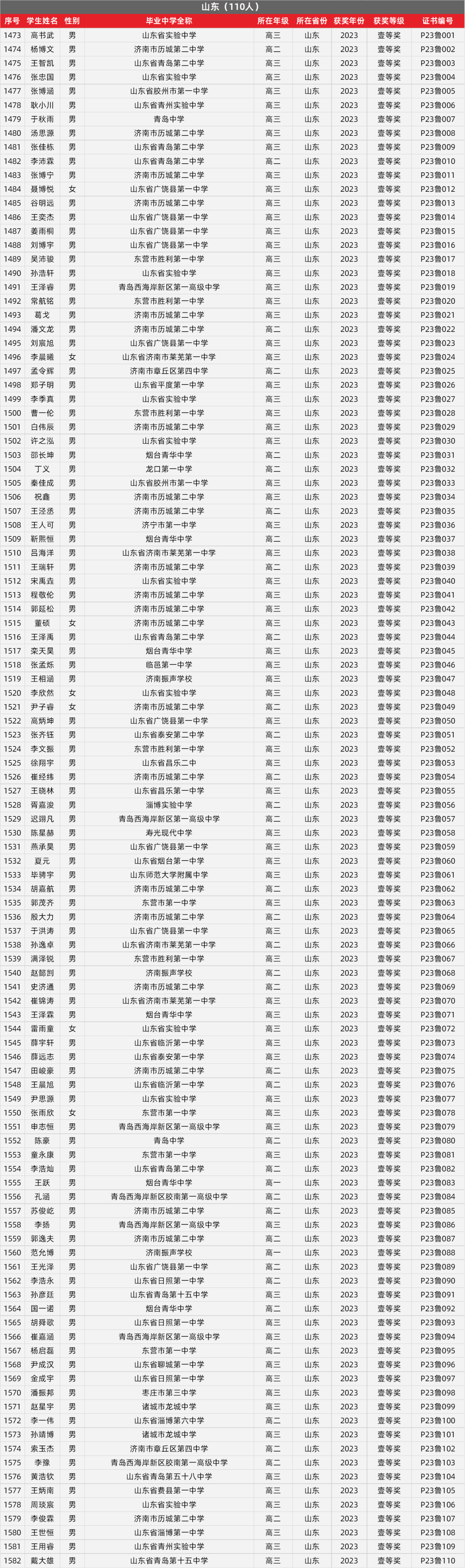 21. 山东物理竞赛获奖名单