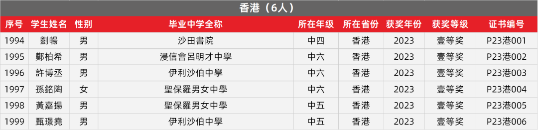 28. 香港物理竞赛获奖名单