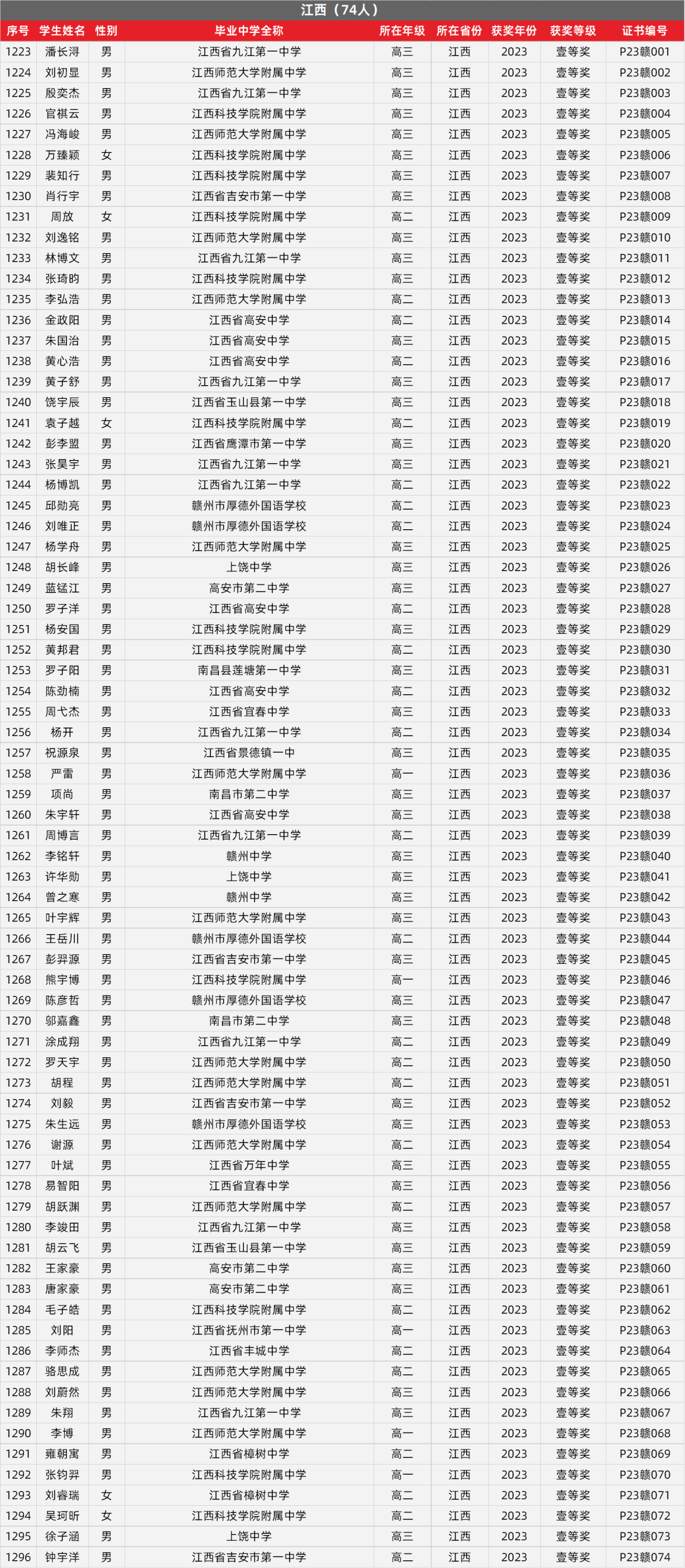 17. 江西物理竞赛获奖名单