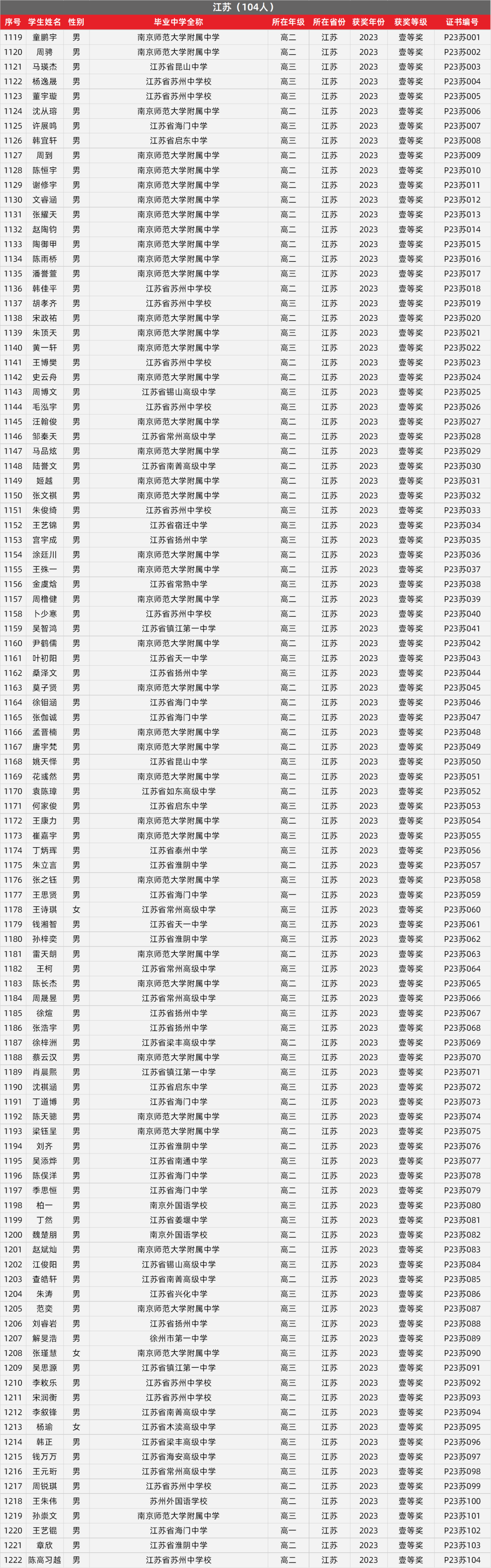 16. 江苏物理竞赛获奖名单