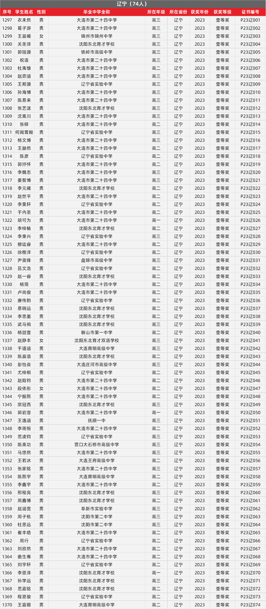 18. 辽宁物理竞赛获奖名单