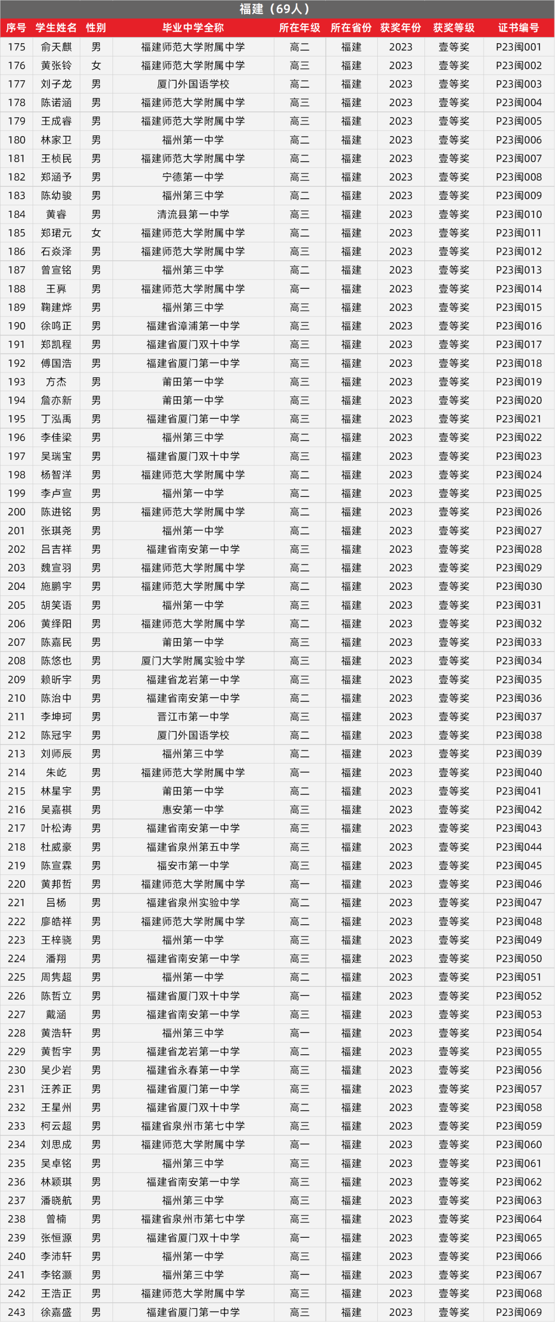 4. 福建物理竞赛获奖名单