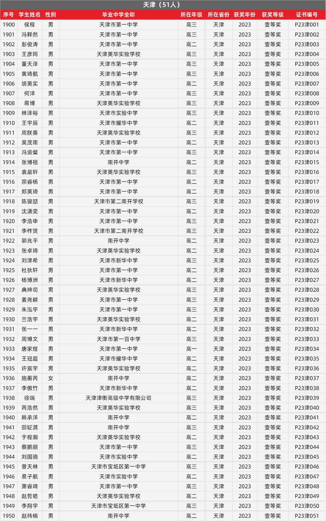 2023年物理竞赛决赛成绩公布!来看看40届中国物理竞赛决赛获奖名单,包括2023年物理竞赛省一等奖获奖学生名单,供2024年参加高考的考生了解。