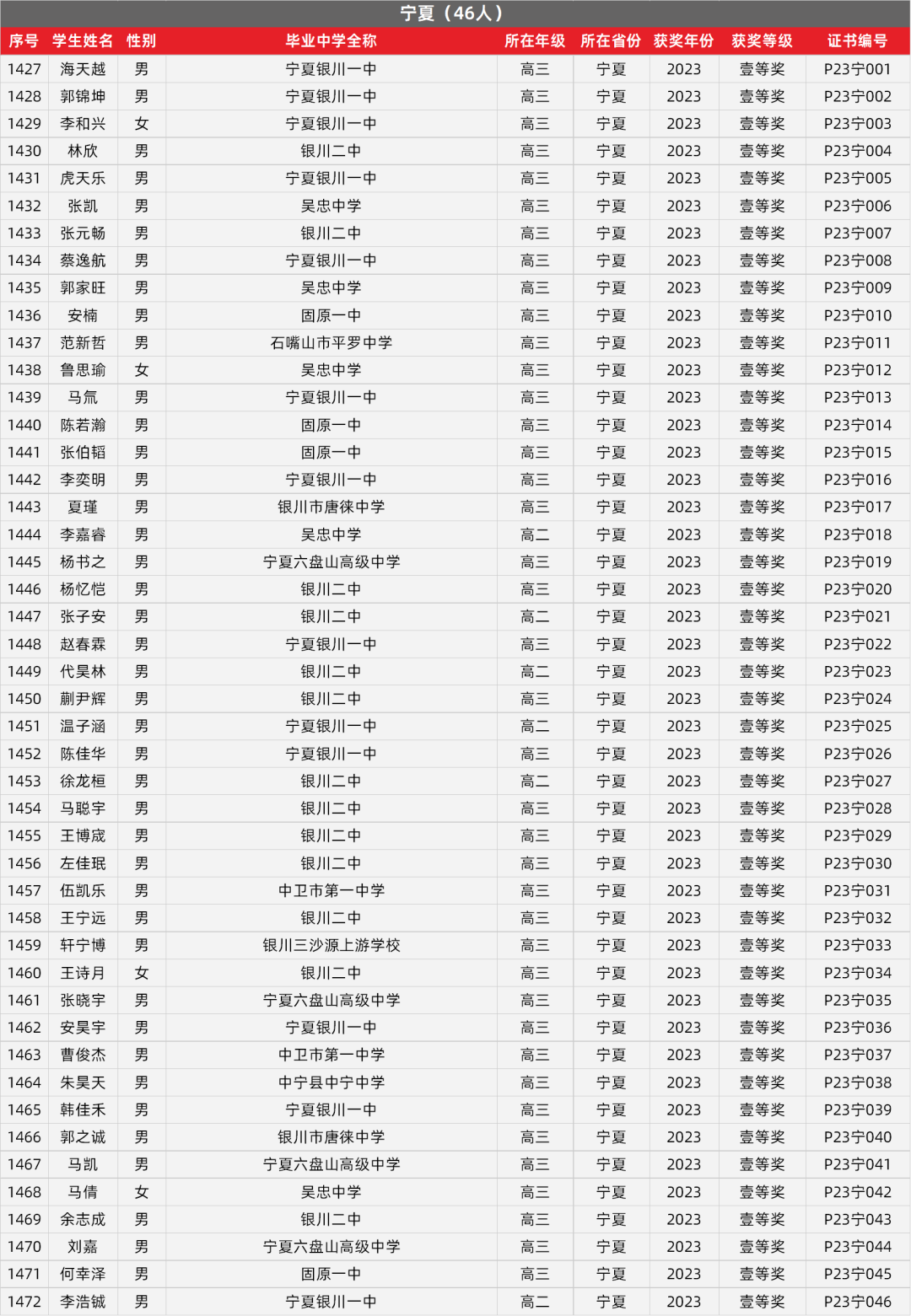 20. 宁夏物理竞赛获奖名单