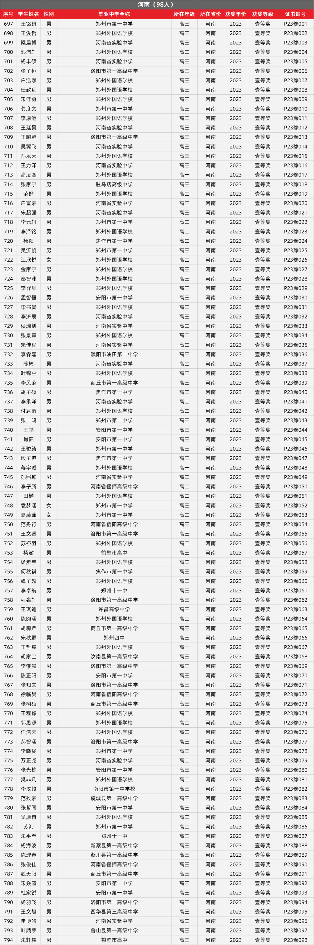 11. 河南物理竞赛获奖名单