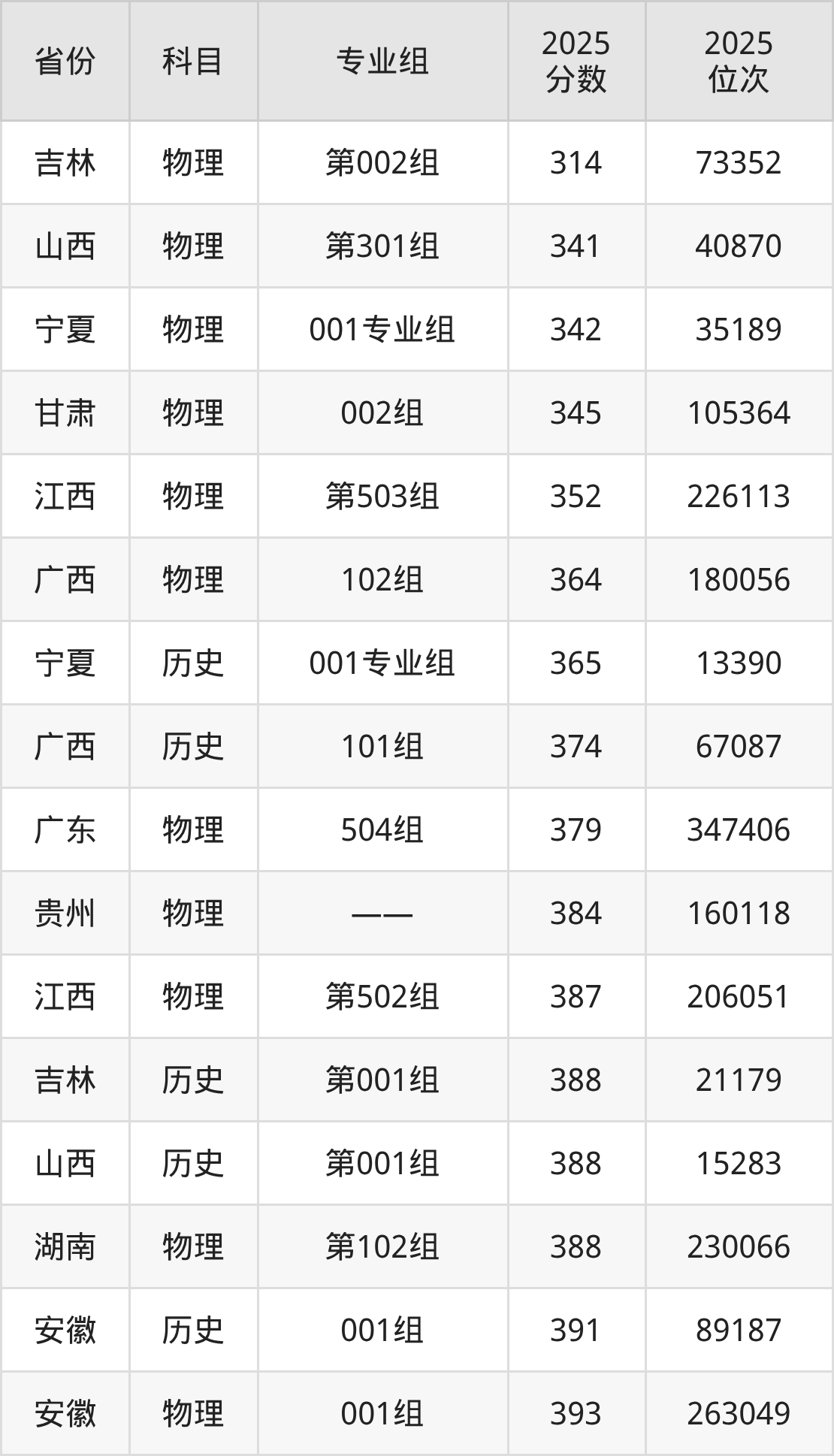 物理类:2025年江西司法警官职业学院录取最低分是314分(吉林),对应的位次排名是73352名。