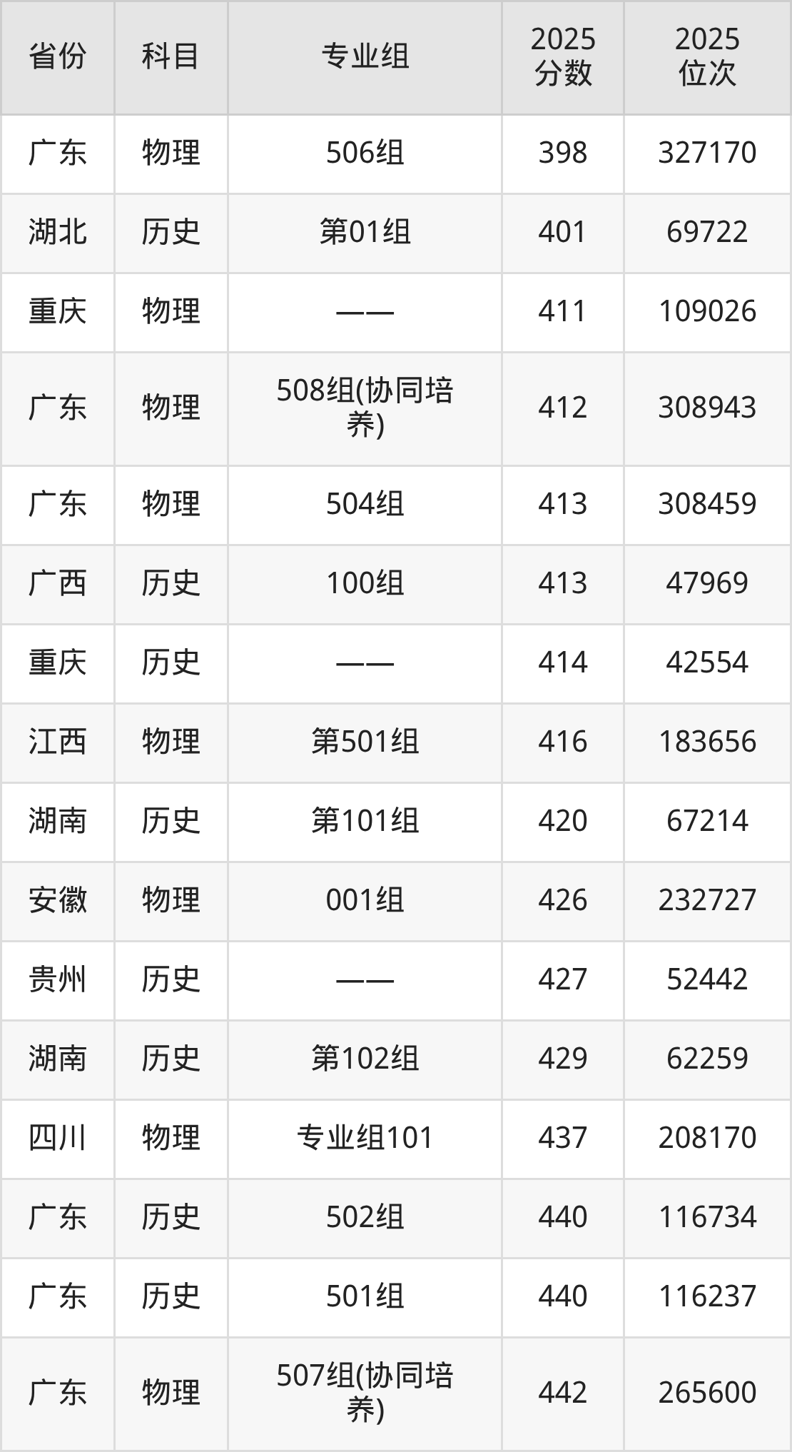 物理类:2025年惠州卫生职业技术学院录取最低分是337分(宁夏),对应的位次排名是35894名。