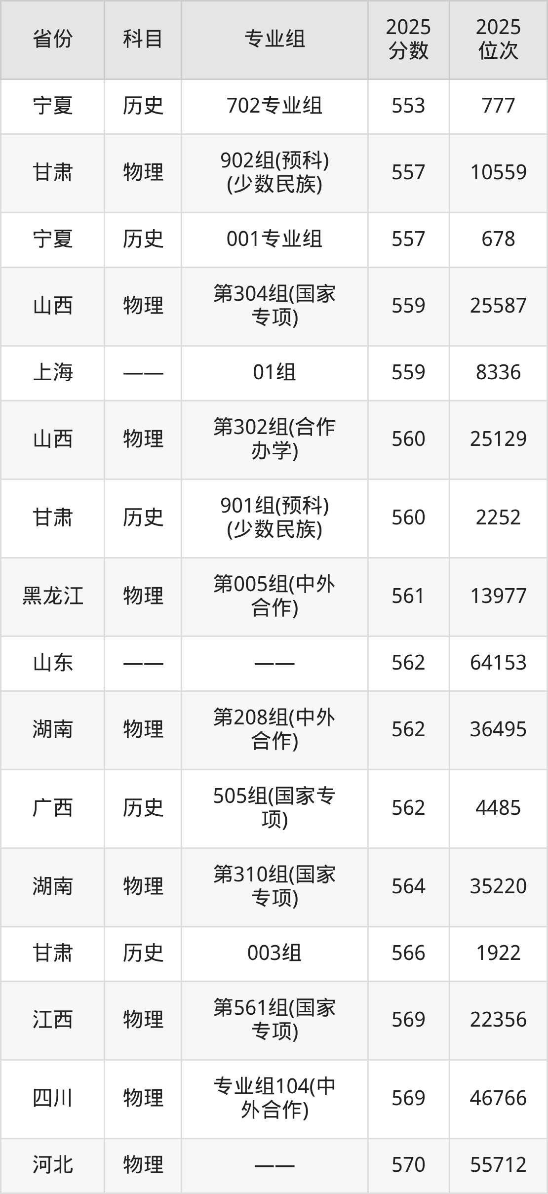 物理类:2025年西南交通大学省内录取最低分是569分,对应的位次排名是46766名。建议:如果2026年排名超过46766名,那么被该校录取的概率较大。