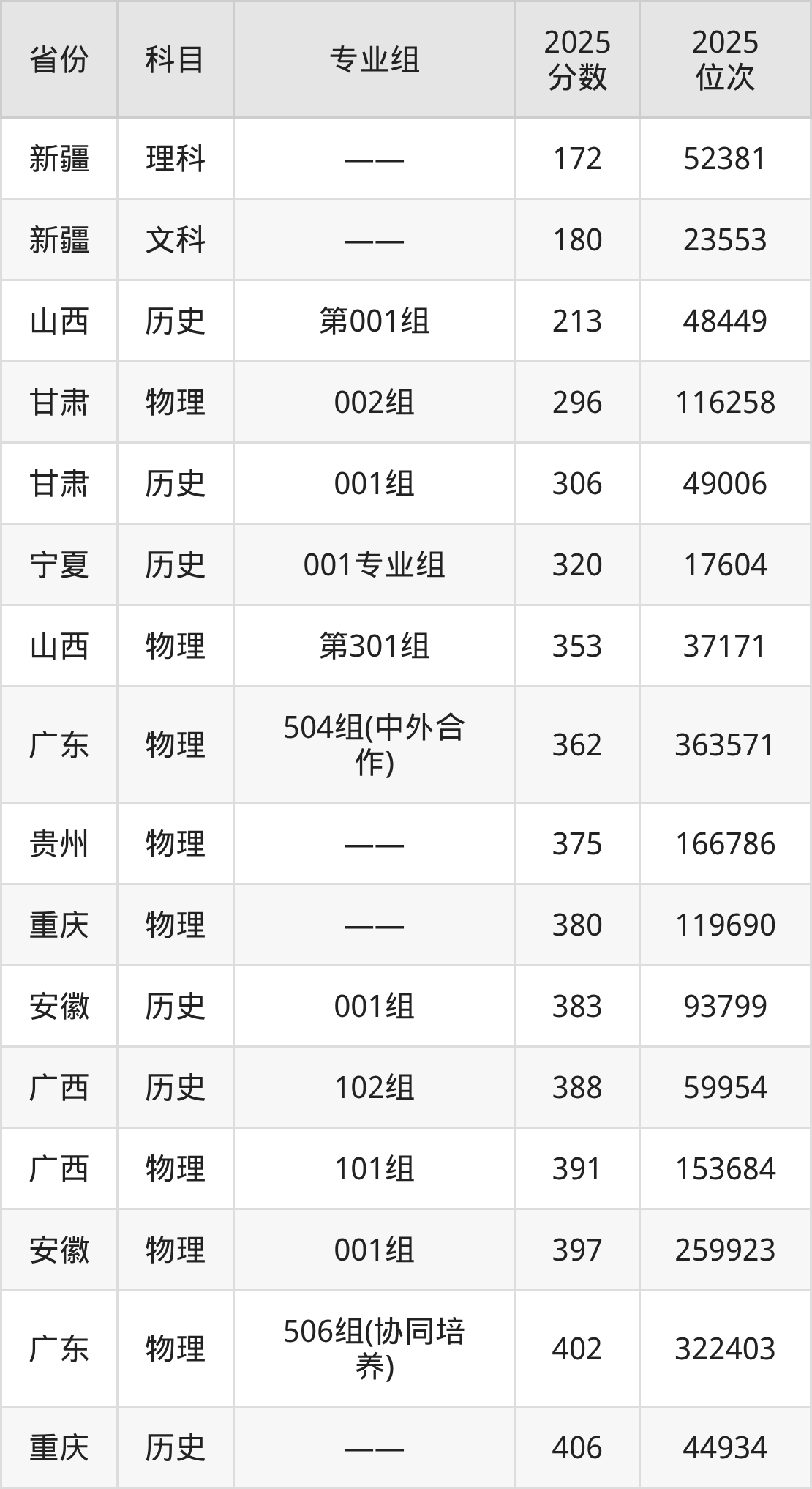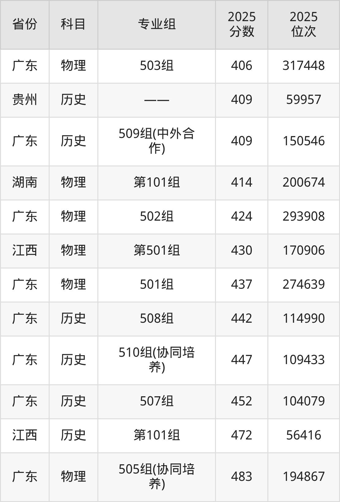 物理类:2025年广东机电职业技术学院录取最低分是296分(甘肃),对应的位次排名是116258名。