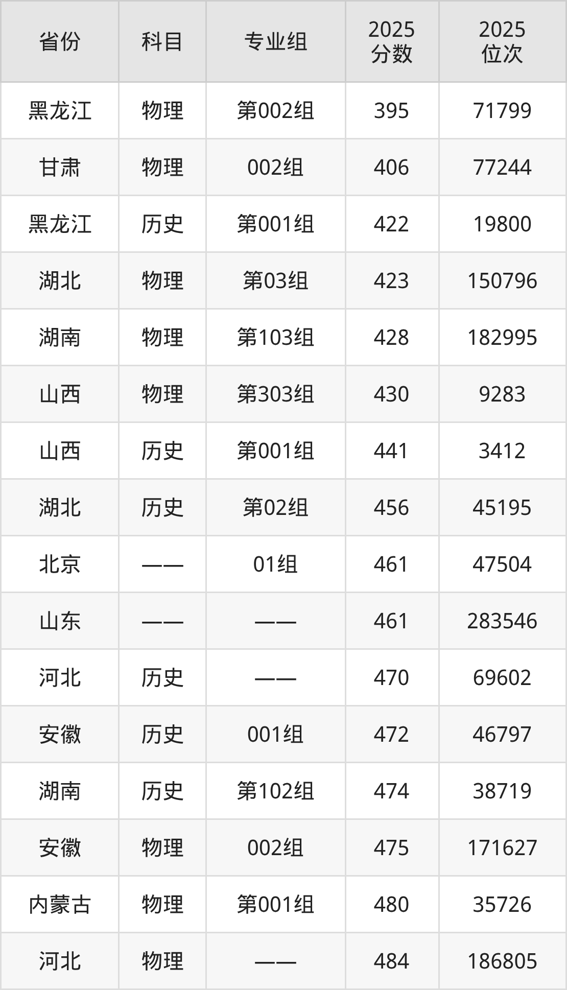 物理类:2025年北京科技职业大学录取最低分是395分(黑龙江),对应的位次排名是71799名。