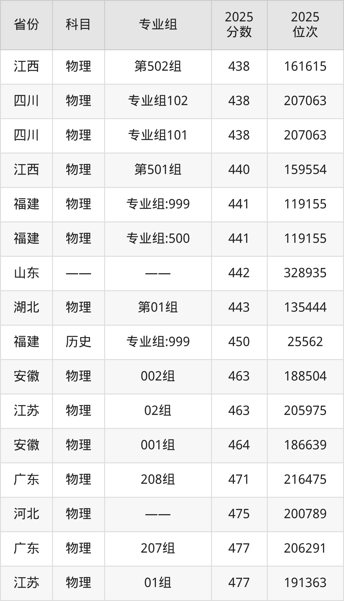 物理类:2025年厦门华厦学院省内录取最低分是441分,对应的位次排名是119155名。建议:如果2026年排名超过119155名,那么被该校录取的概率较大。