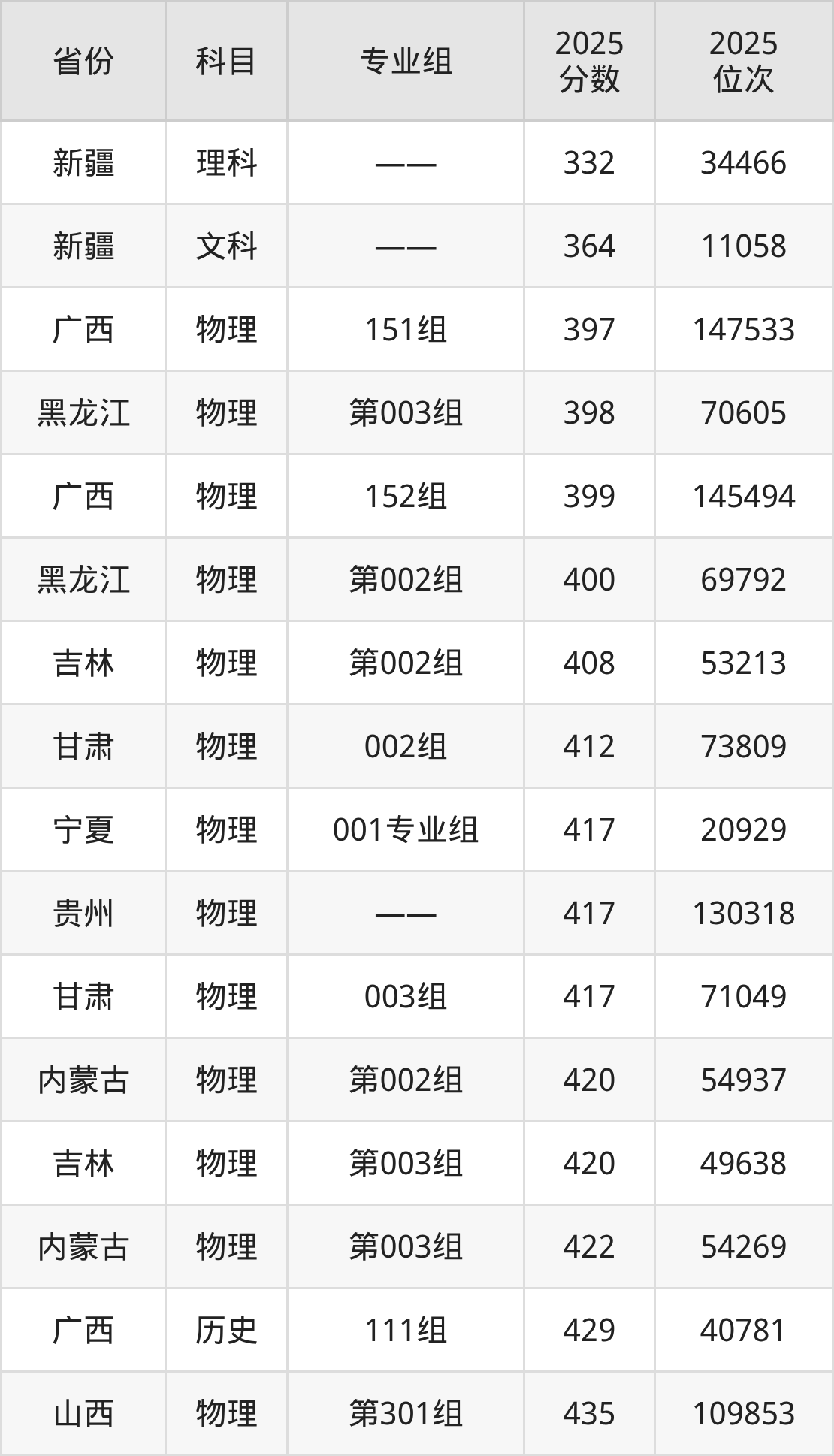 物理类:2025年郑州商学院录取最低分是397分(广西),对应的位次排名是147533名。