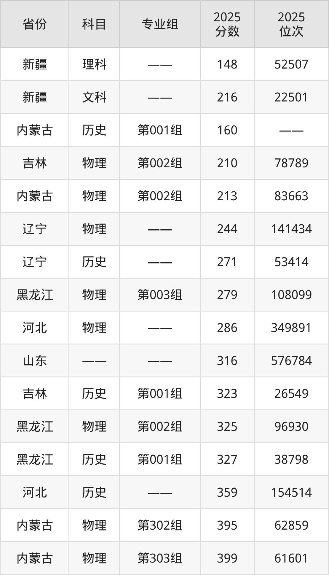物理类:2025年兴安职业技术大学自治区内录取最低分是213分,对应的位次排名是83663名。建议:如果2026年排名超过83663名,那么被该校录取的概率较大。